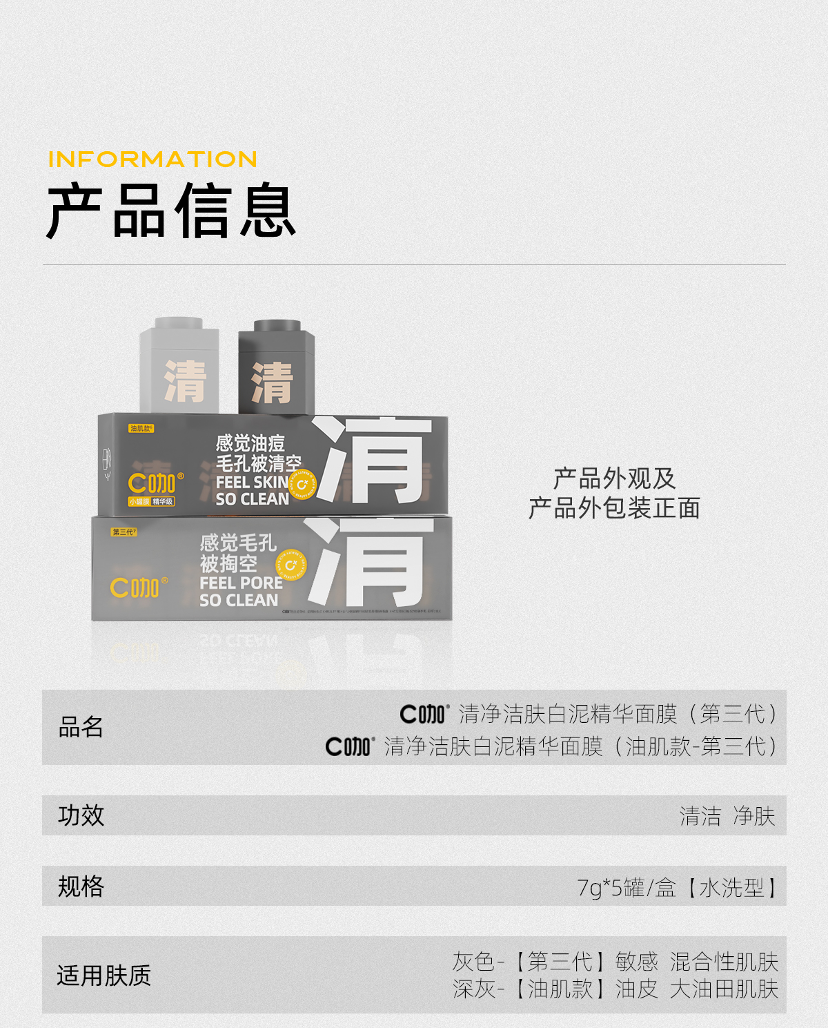 商品简介:【凑单300-40到手50.58】王一博代言C咖小罐面膜深层清洁泥膜5罐装,无酸清洁配方导出黑头 无需建立耐受~