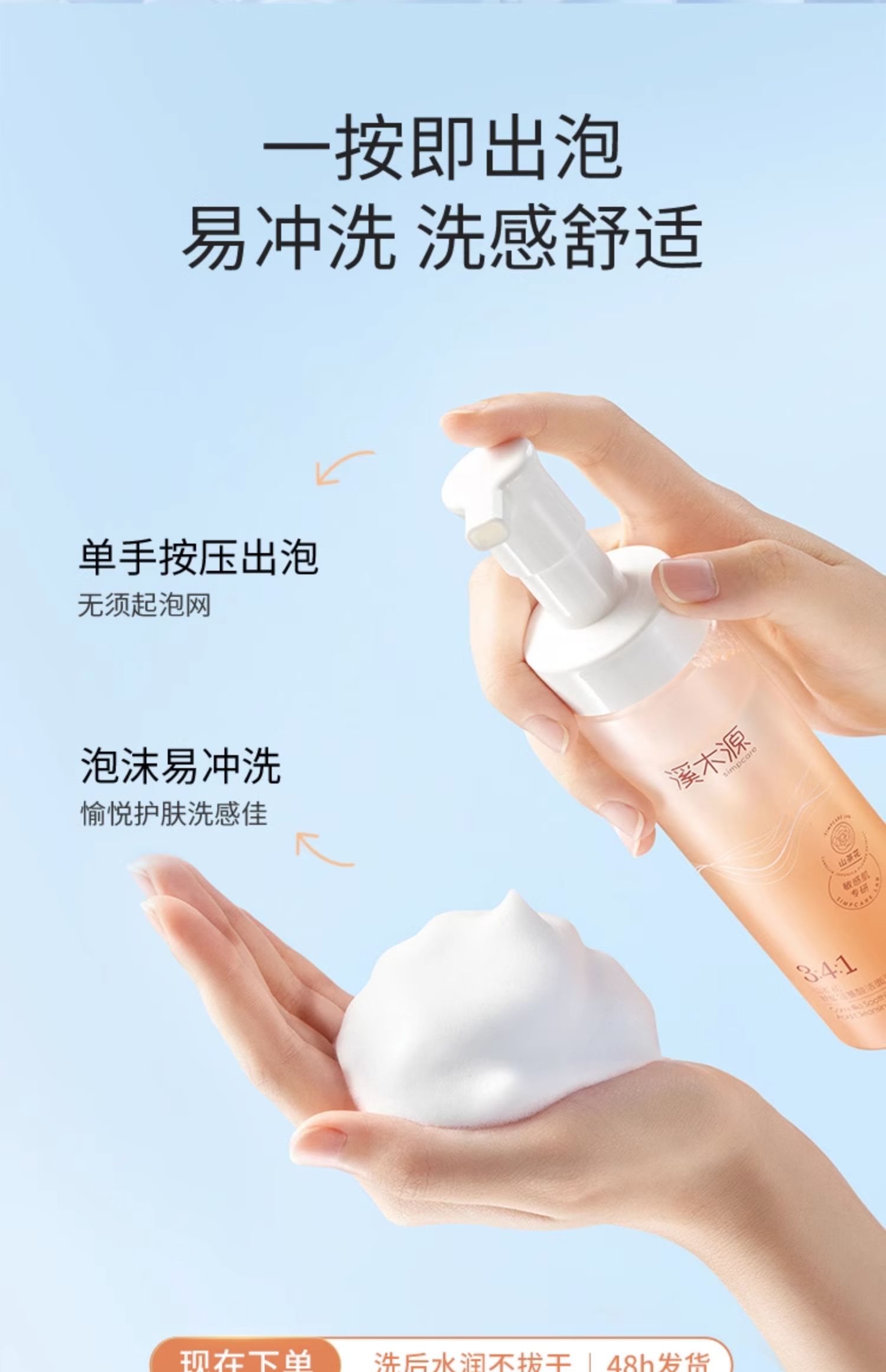 商品介绍:305ml!溪木源山茶花氨基酸洁面慕斯