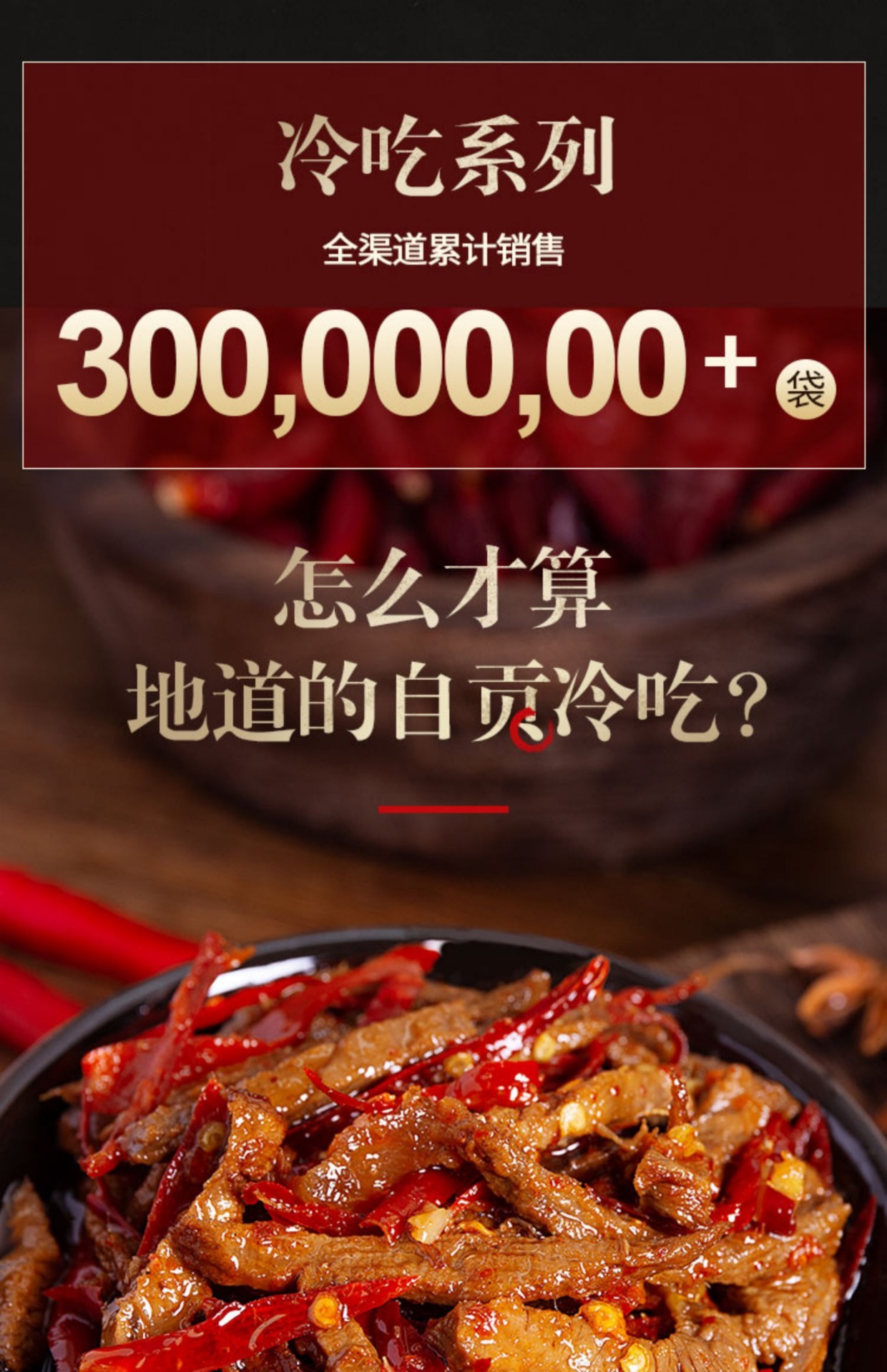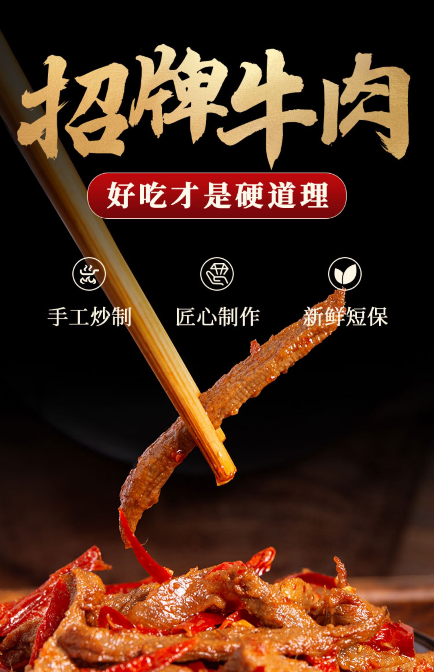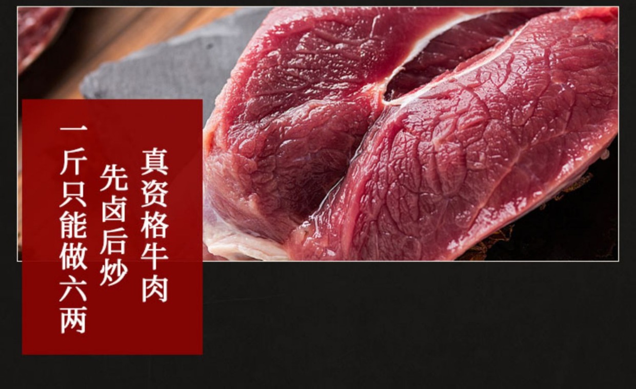 商品简介:招牌冷吃牛肉,先卤后炒更入味·【谭八爷】麻辣冷吃牛肉,卤汁浸入肌理香辣解馋过瘾,重口味爱好者闭眼入,配制调味料(自贡冷吃灵魂)。