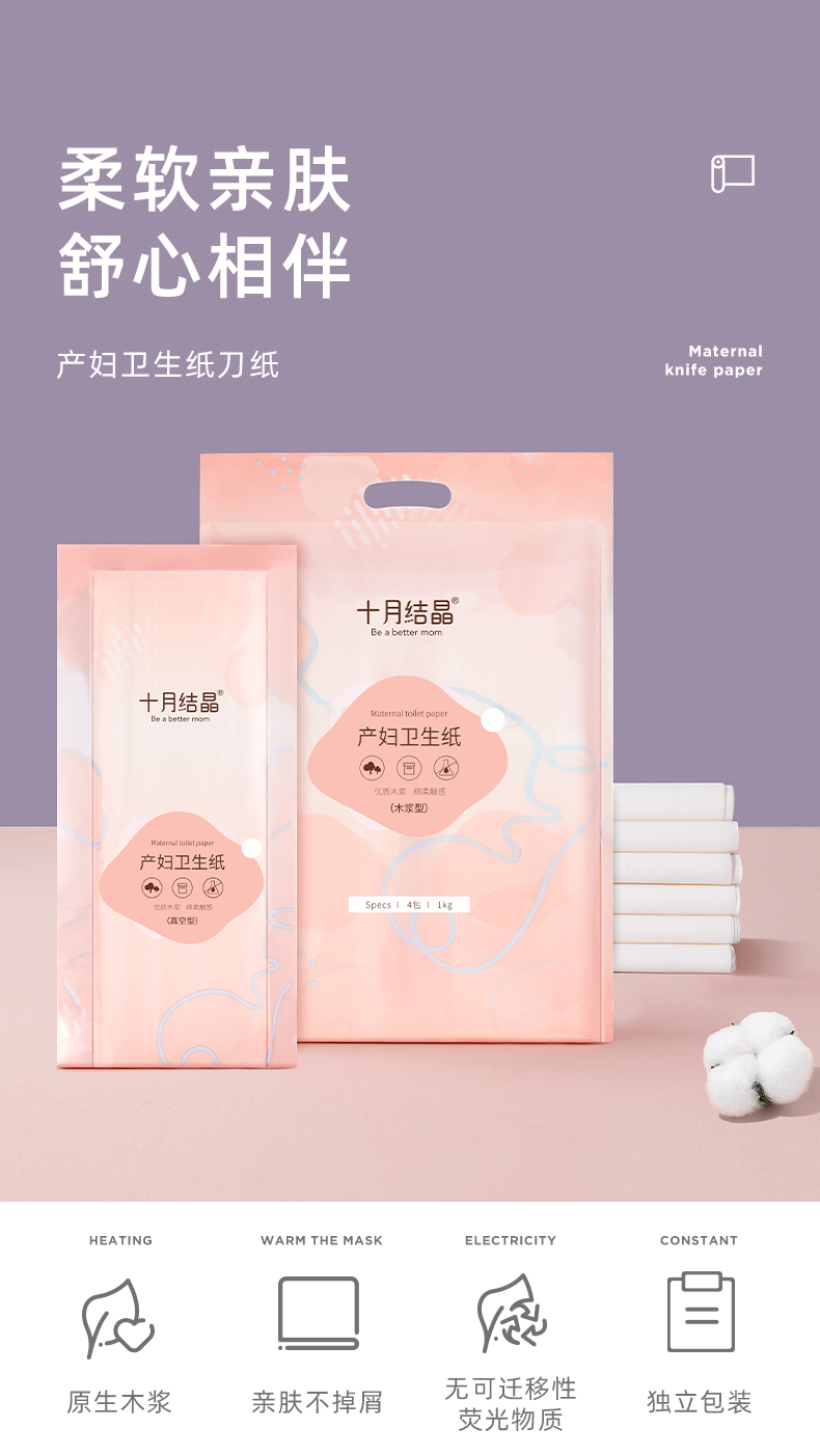 商品介绍:【拍3件】十月结晶产后产妇专用刀纸1KG