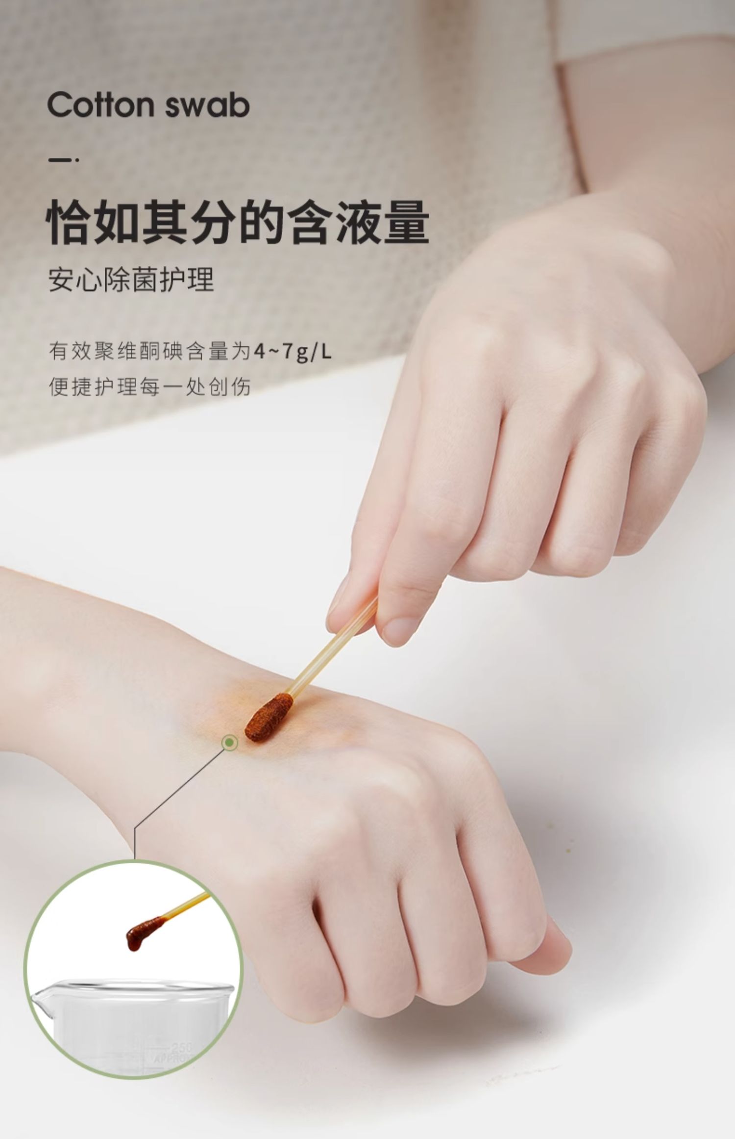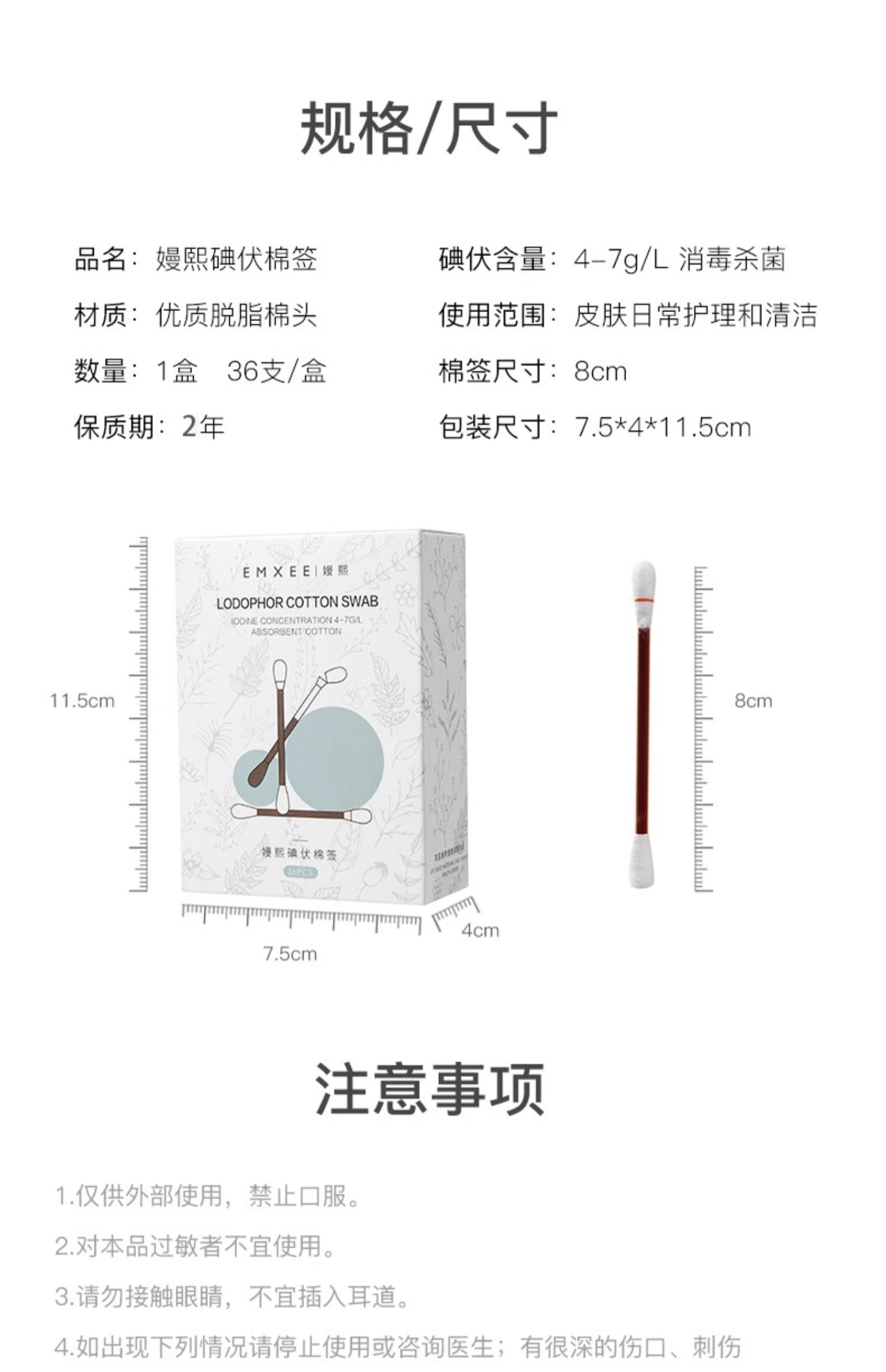 商品介绍:嫚熙一次性碘伏棉签36支/盒