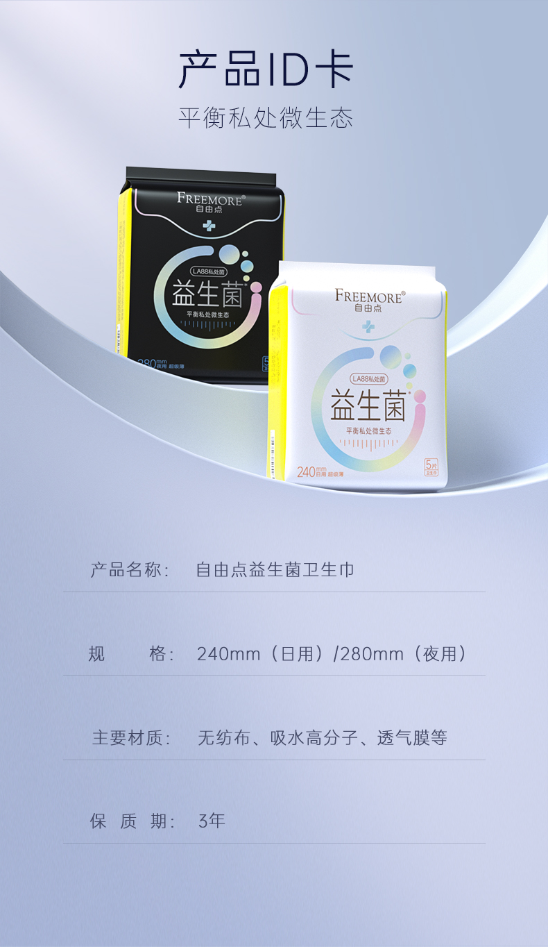 商品名称:自由点卫生巾益生菌系列5片*6包超薄日夜用组合姨妈巾
