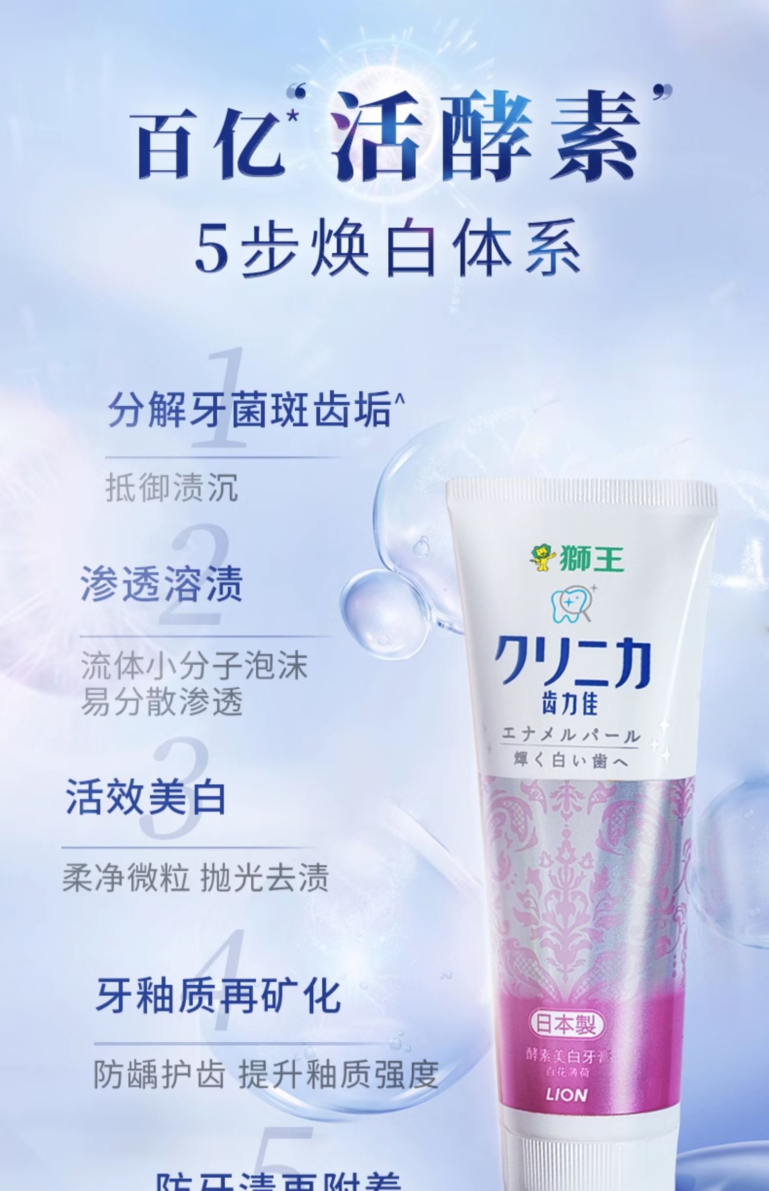 商品名称:LION狮王齿力佳酵素美白牙膏氨基酸去黄清新口气含氟官方正品
