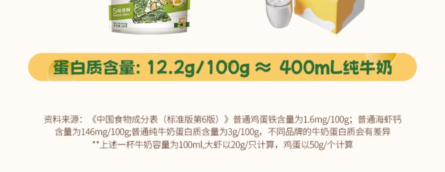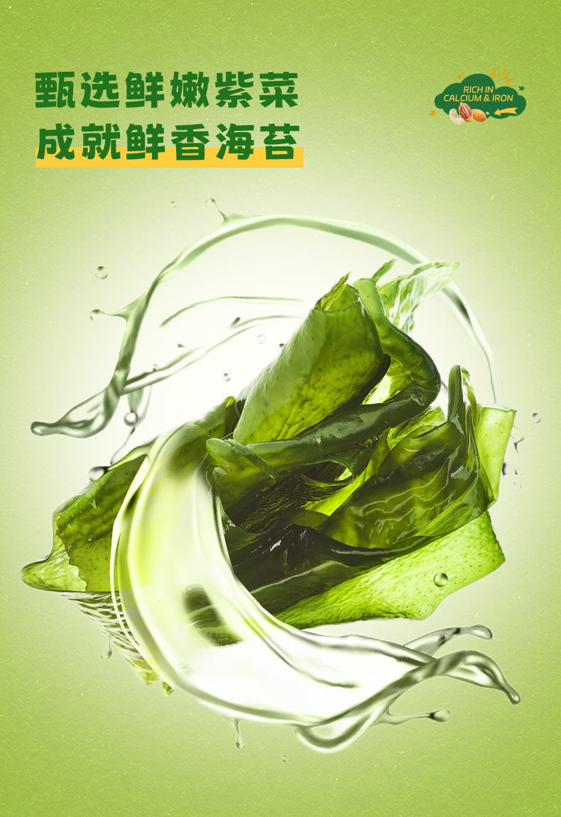 商品简介:海苔脆2袋装拍1专注宝宝零辅食,明明白白每一口。一级条斑紫菜,藻体薄嫩完整度高,养殖条件苛刻产量较低.,蛋白质含量高。