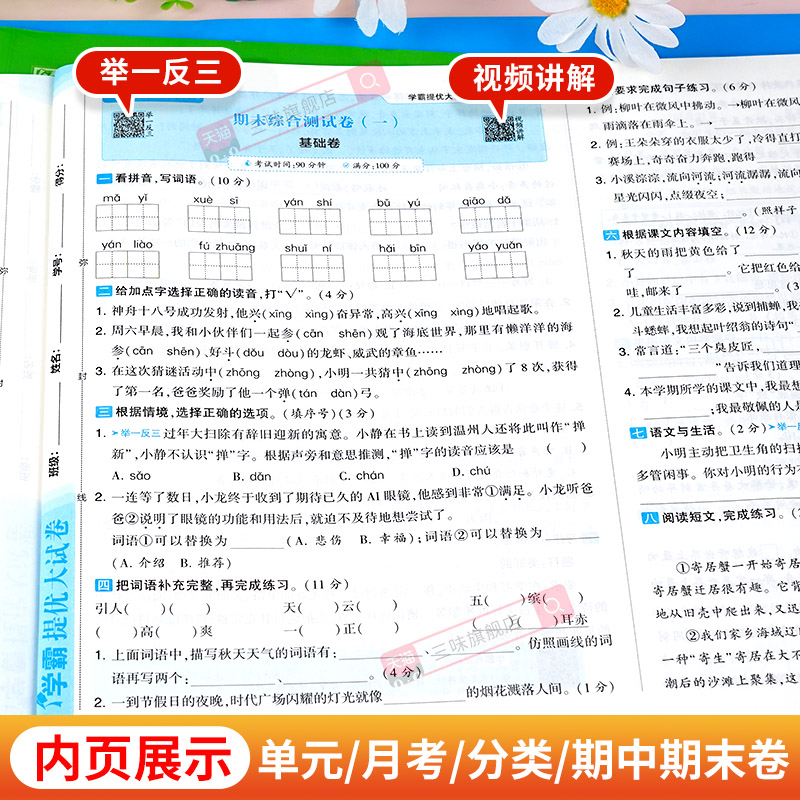 商品介绍:2024秋新版!学霸提优大试卷【1-6年任选】