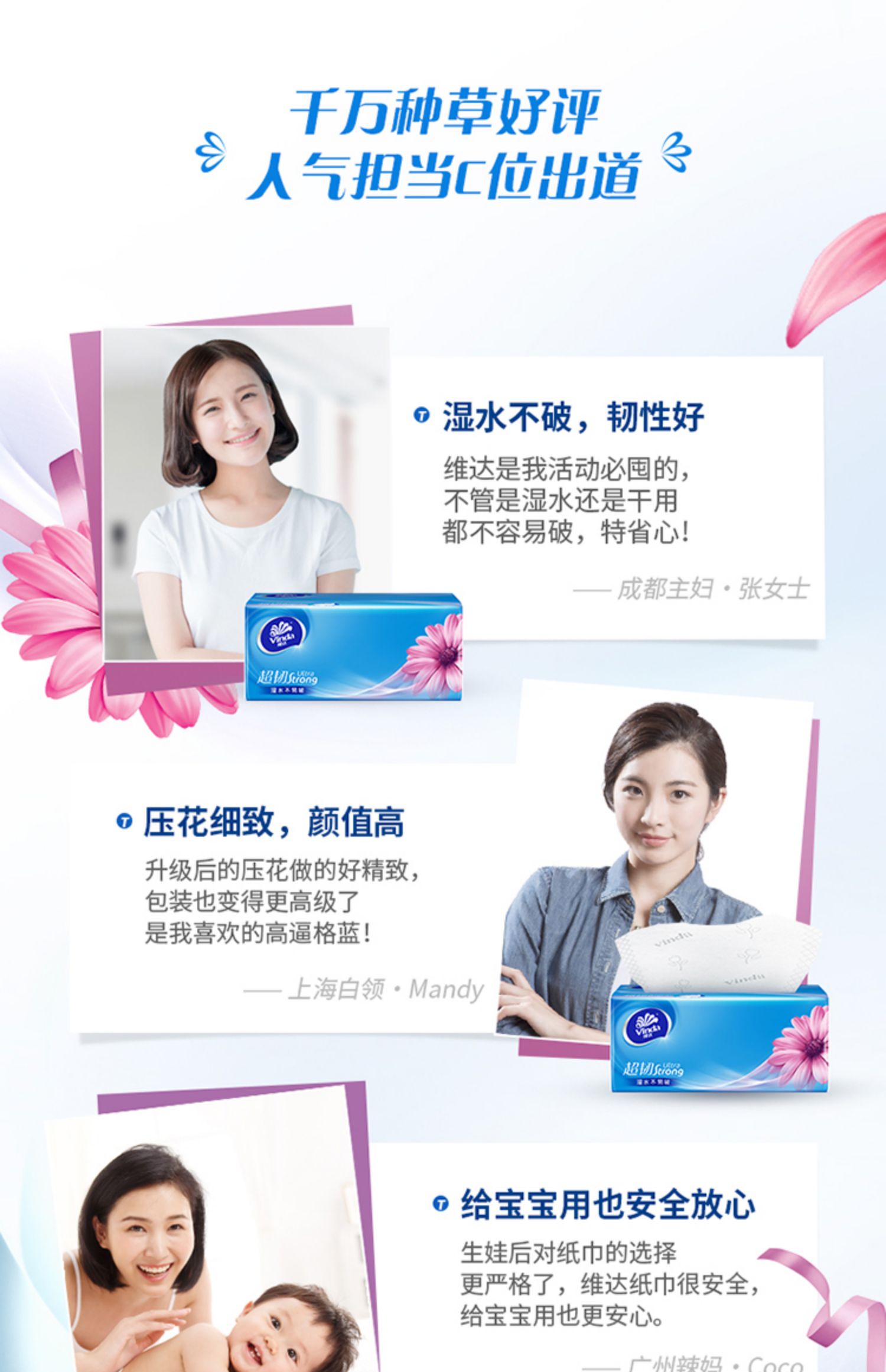 商品介绍:维达超韧3层120抽抽纸整箱装