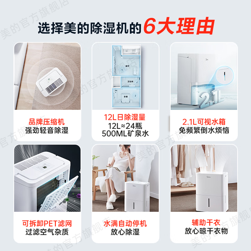 商品名称:【政府补贴】美的除湿机家用轻音卧室客厅抽湿干衣回南天吸湿12升