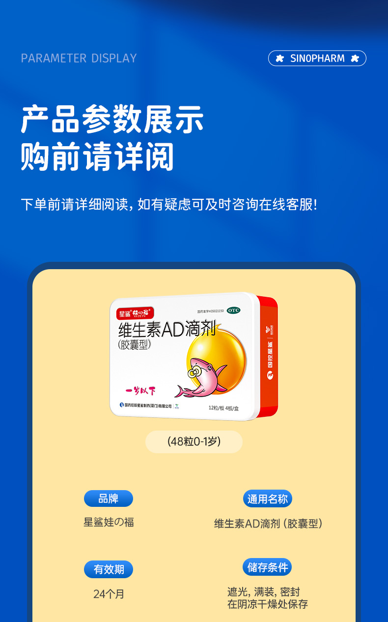 商品介绍:星鲨维生素ad滴剂婴儿1岁下维生素ad