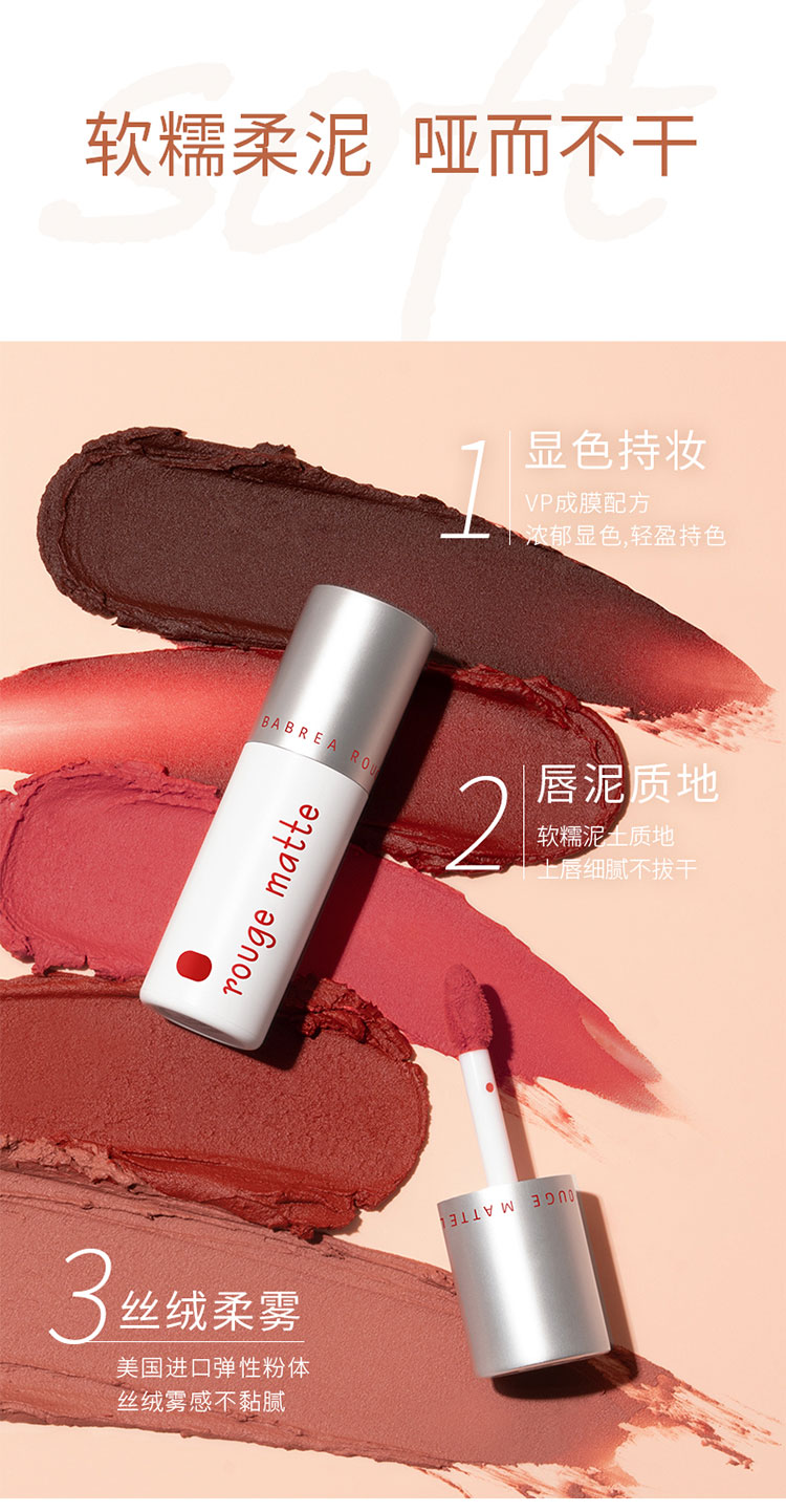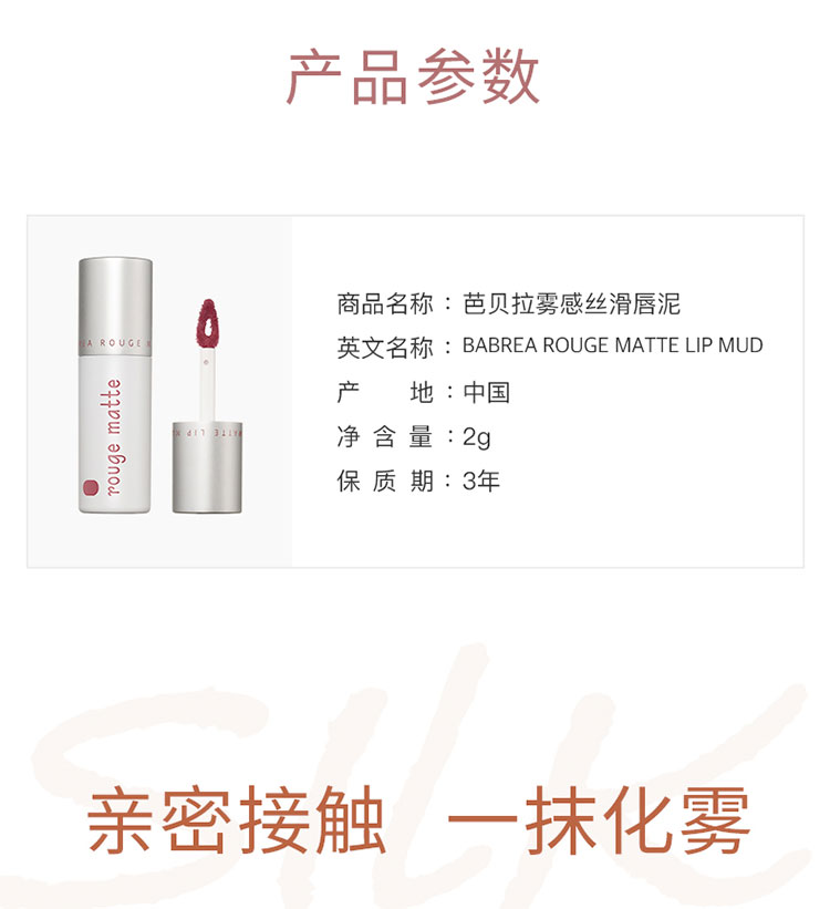 商品介绍:【凑单17.7]芭贝拉雾感丝滑唇泥