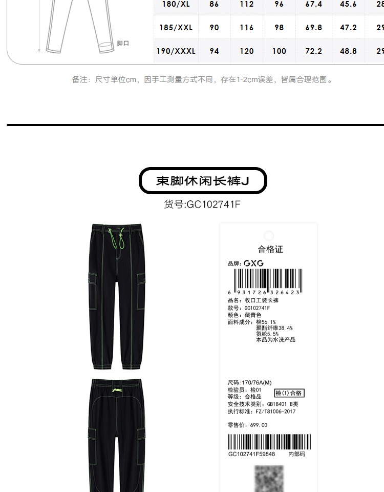 商品名称:【长裤低价清仓】GXG奥莱男时尚百搭束脚工装裤长裤潮商务休闲裤