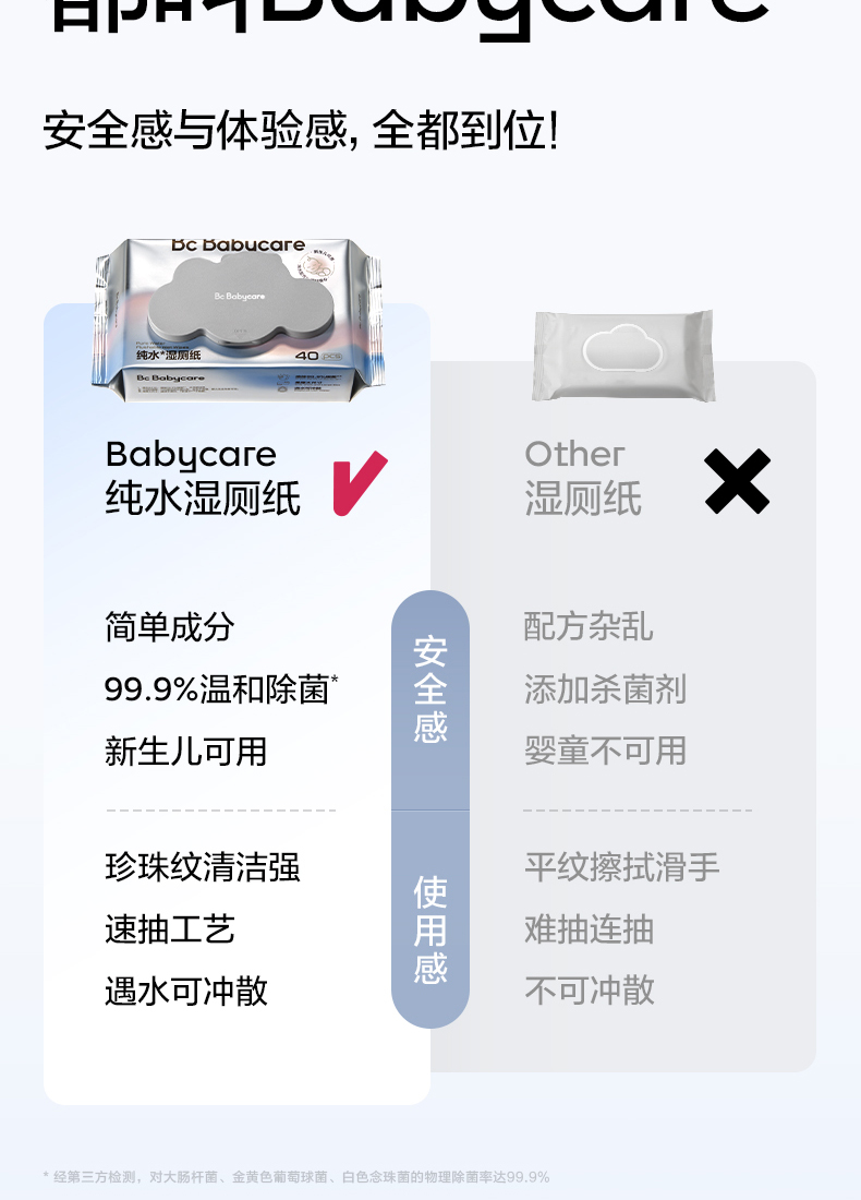 商品介绍:40抽*3包babycare纯水湿厕纸
