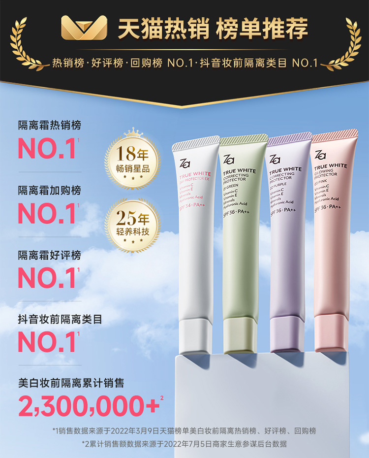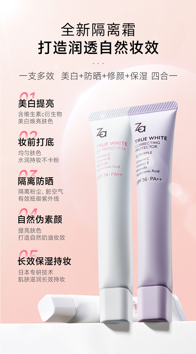 商品名称:【龚俊同款】Za姬芮隔离霜美白遮瑕妆前乳SPF36防晒霜2支素颜霜