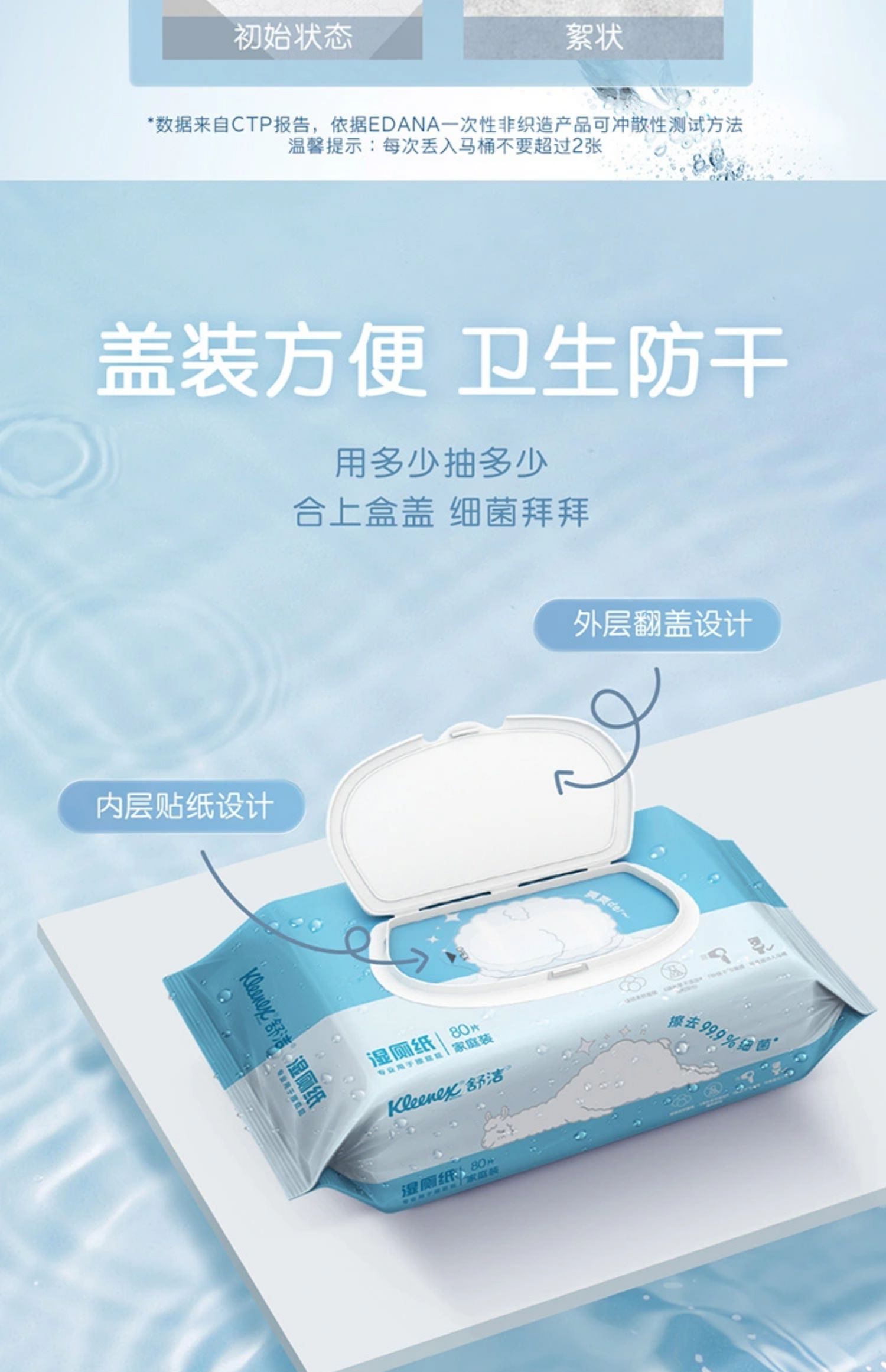 商品介绍:舒洁湿厕纸家庭实惠装80抽*8包