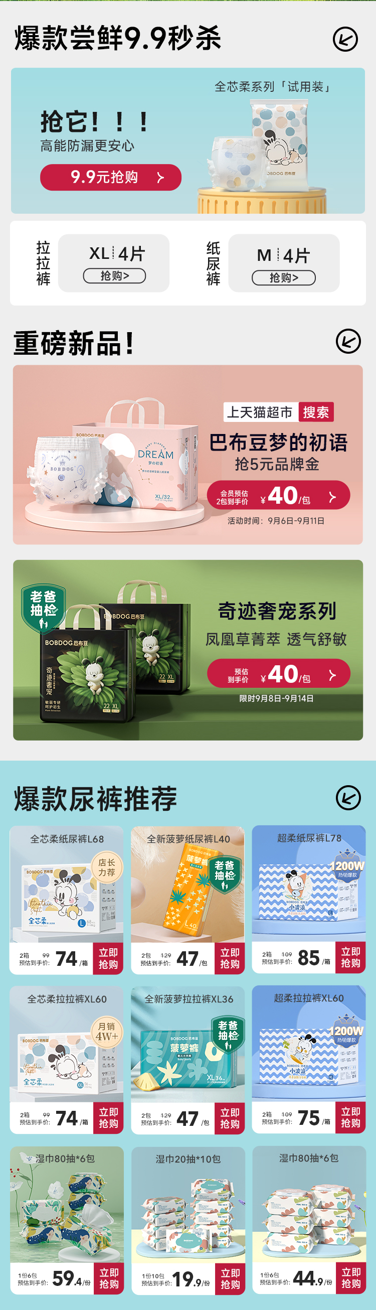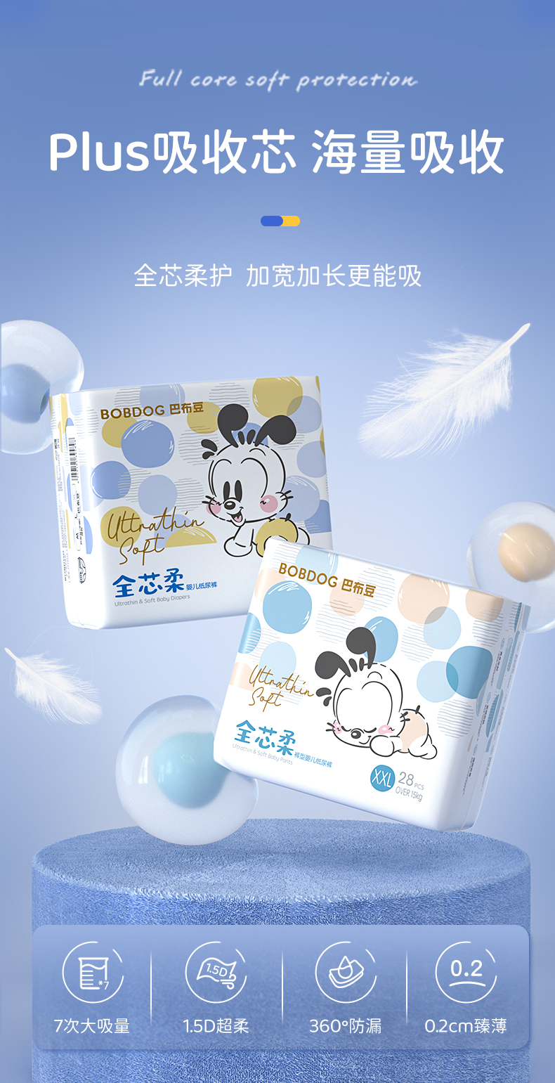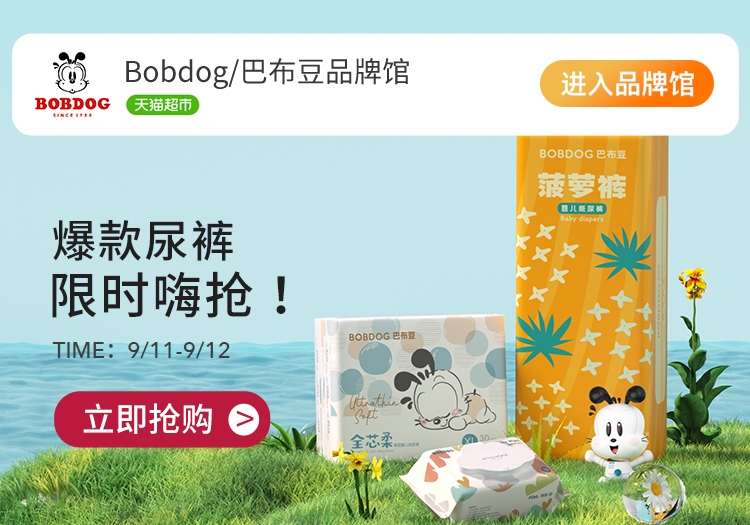 商品介绍:【拍2件!折18.8/包】巴布豆全芯柔拉拉裤