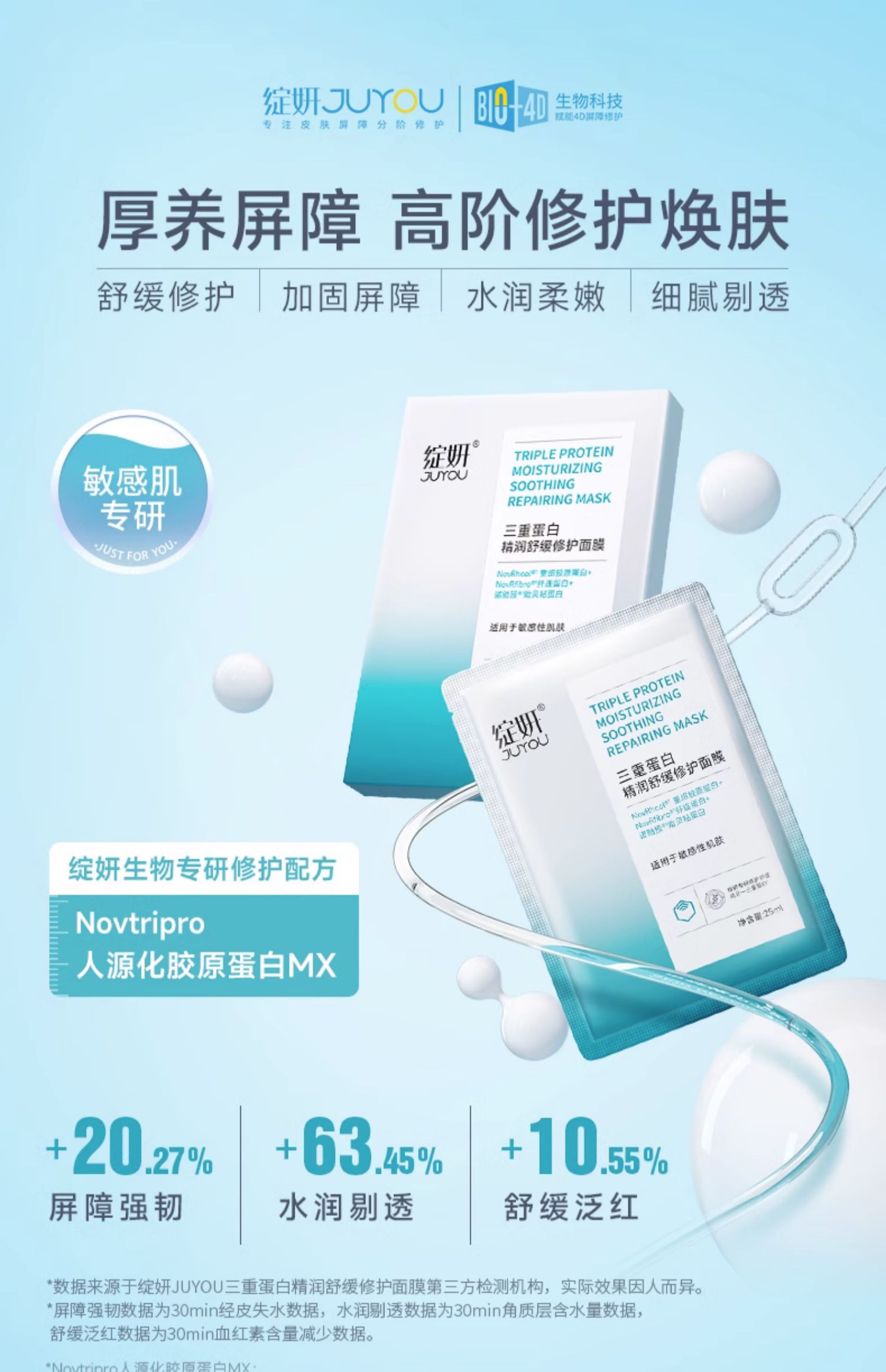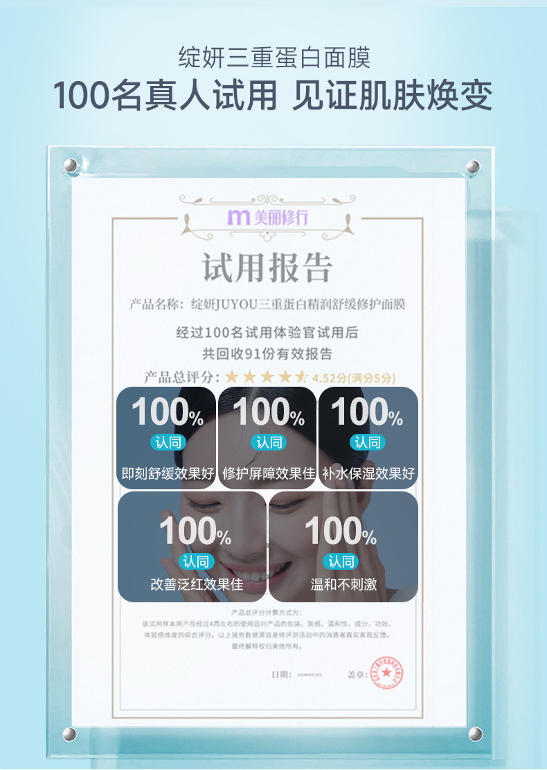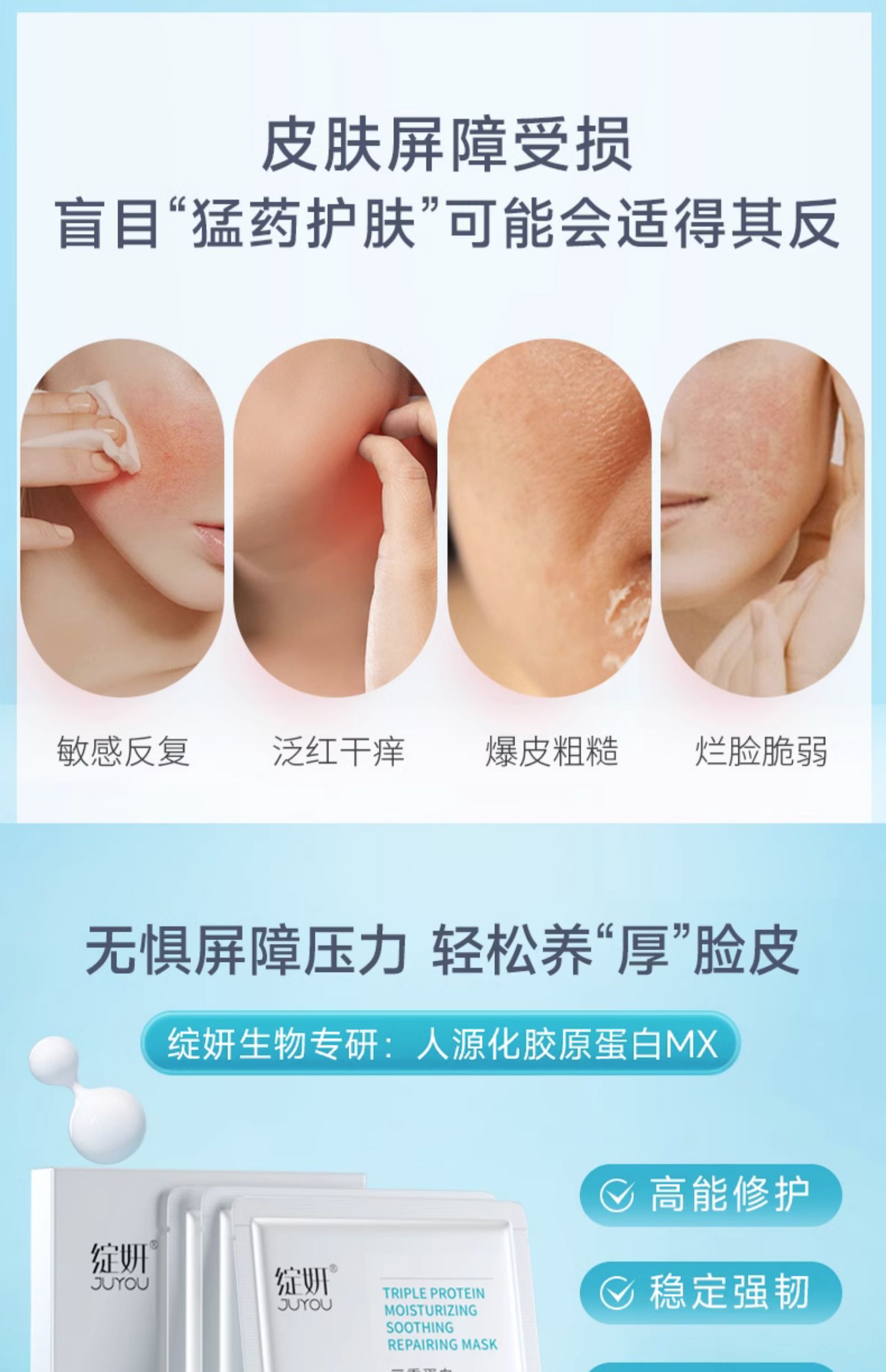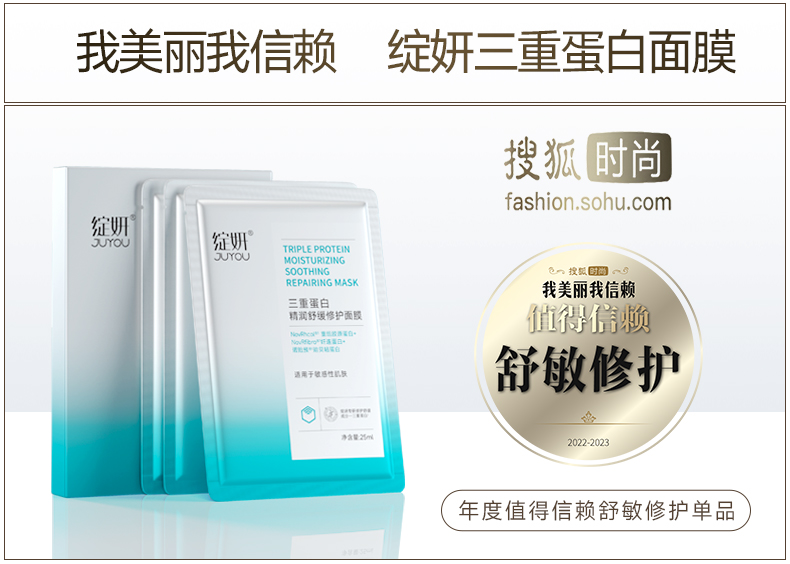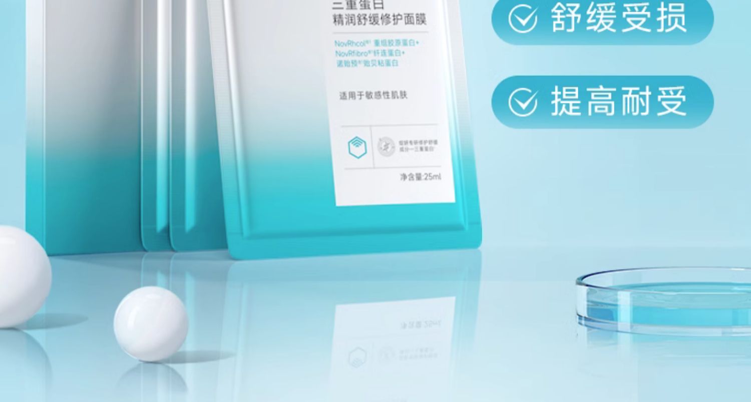 】绽妍面膜三重蛋白修护精华贴舒缓干痒敏感红肌屏障补水护肤品。