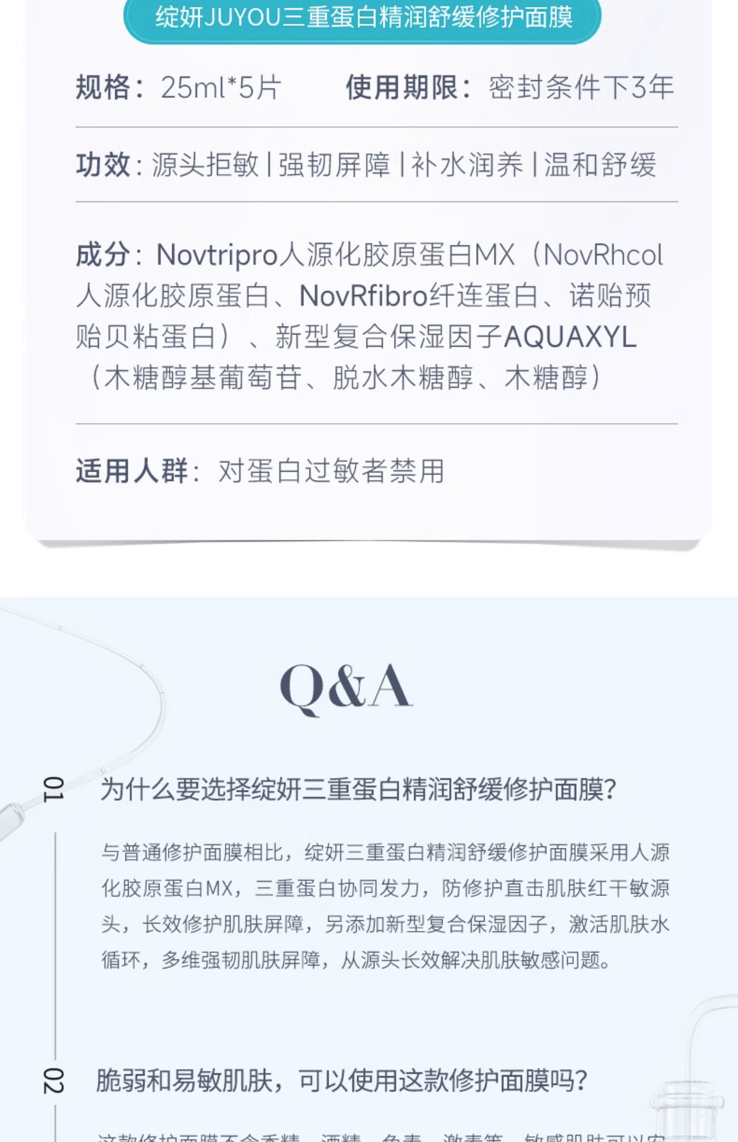 商品介绍:绽妍面膜三重蛋白修护精华贴