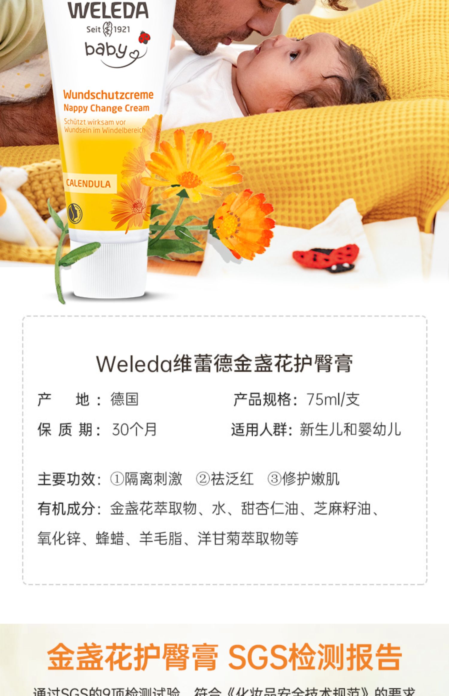 商品简介:【拍2支,99.4+赠轻薄面霜75ml*1】欧洲有机母婴护理品牌,德国weleda维蕾德婴儿护臀膏,防止红屁股,天然成分,宝宝湿疹、红屁股护臀润肤,植物草本萃取,天然无激素,祛湿止痒!
