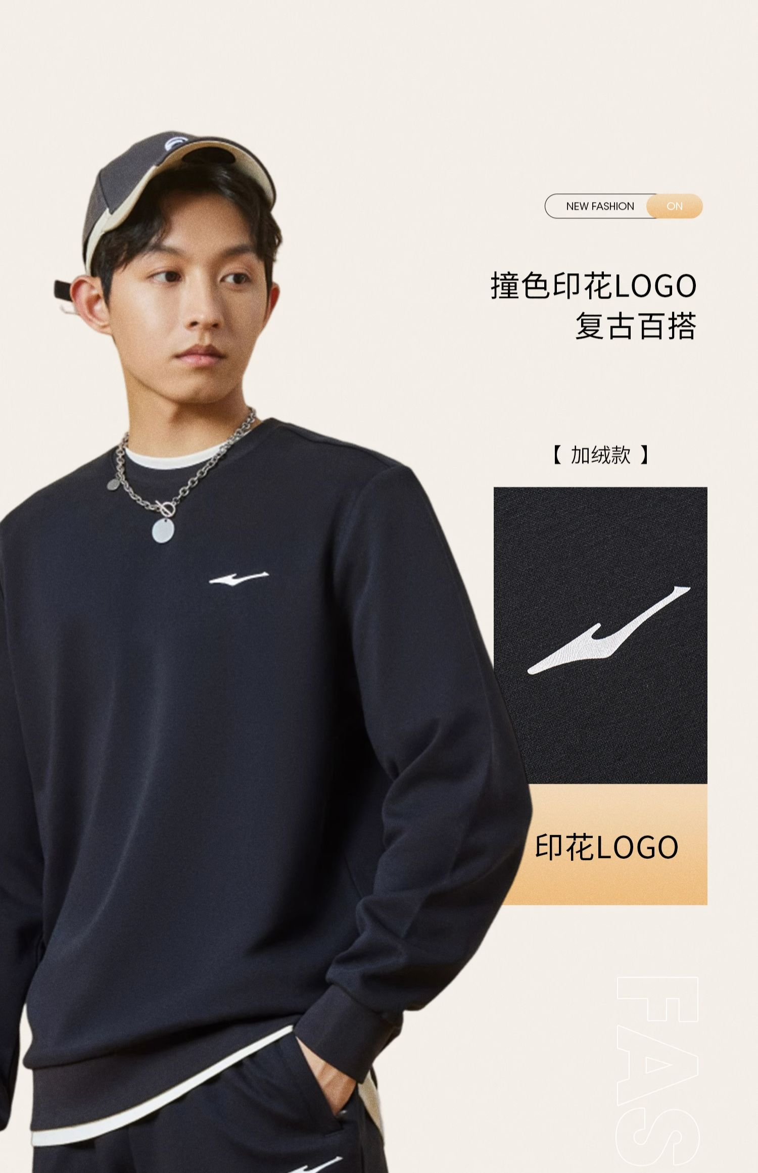商品介绍:拍2件!鸿星尔克圆领套头卫衣