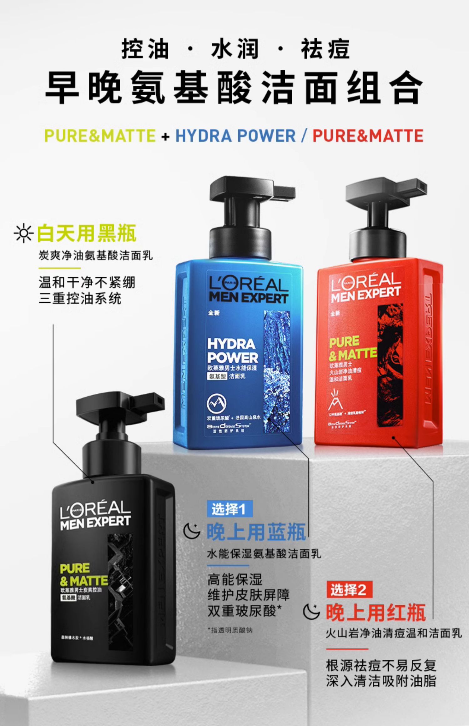 商品名称:欧莱雅男士专用氨基酸洗面奶补水保湿控油洁面乳男护肤品官方正品
