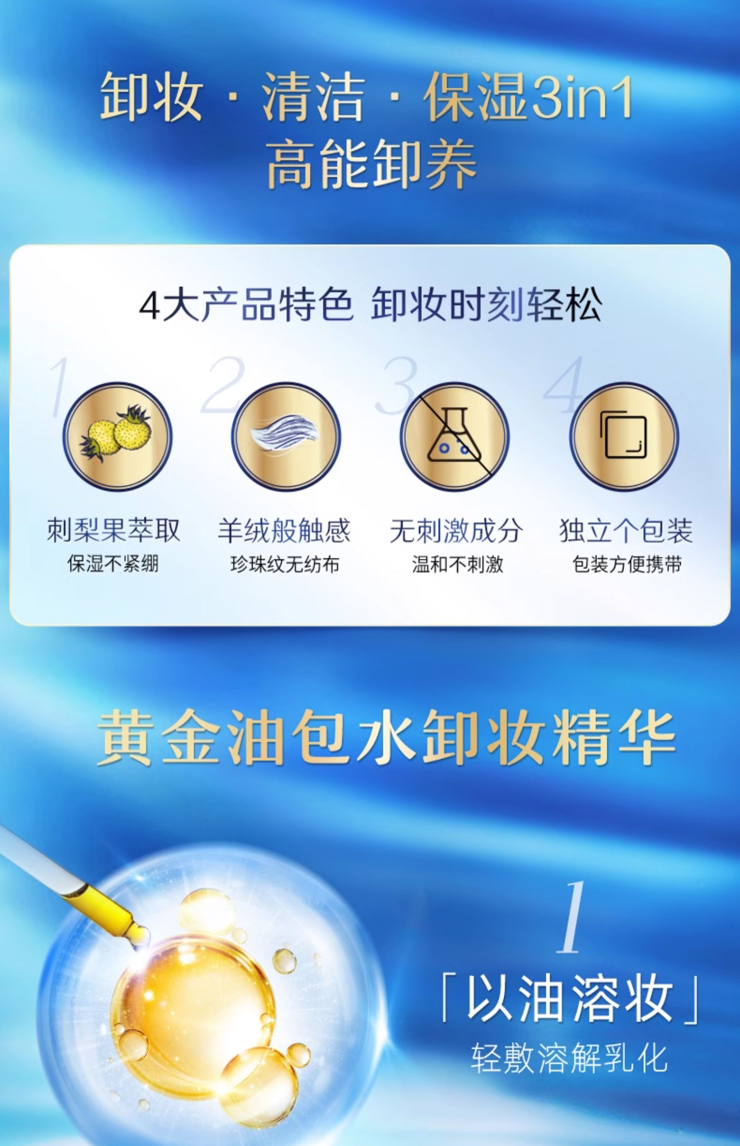 商品简介:【拍2件!】【1套66折,2件6折买2套赠卸妆湿巾5片】尤妮佳舒蔻保湿卸妆湿巾,以油溶妆、轻盈无残留,卸妆清洁保湿3in1高能卸养,黄金油包水卸妆水精华,植萃呵护,水润不紧绷,真正做到一片卸全脸,单片独立包装、便携高效。