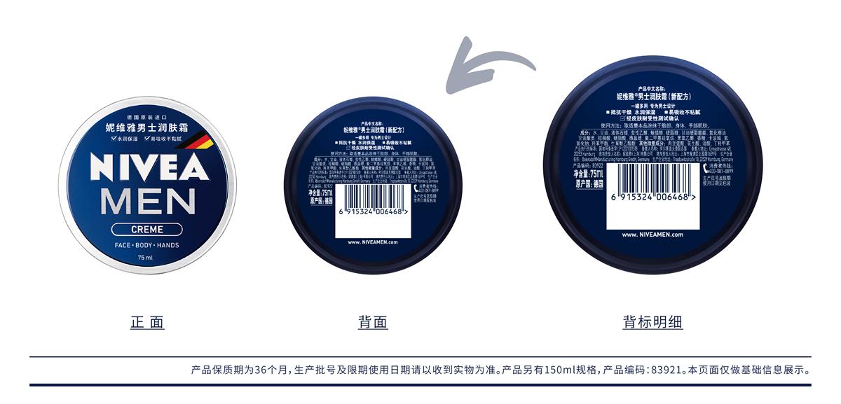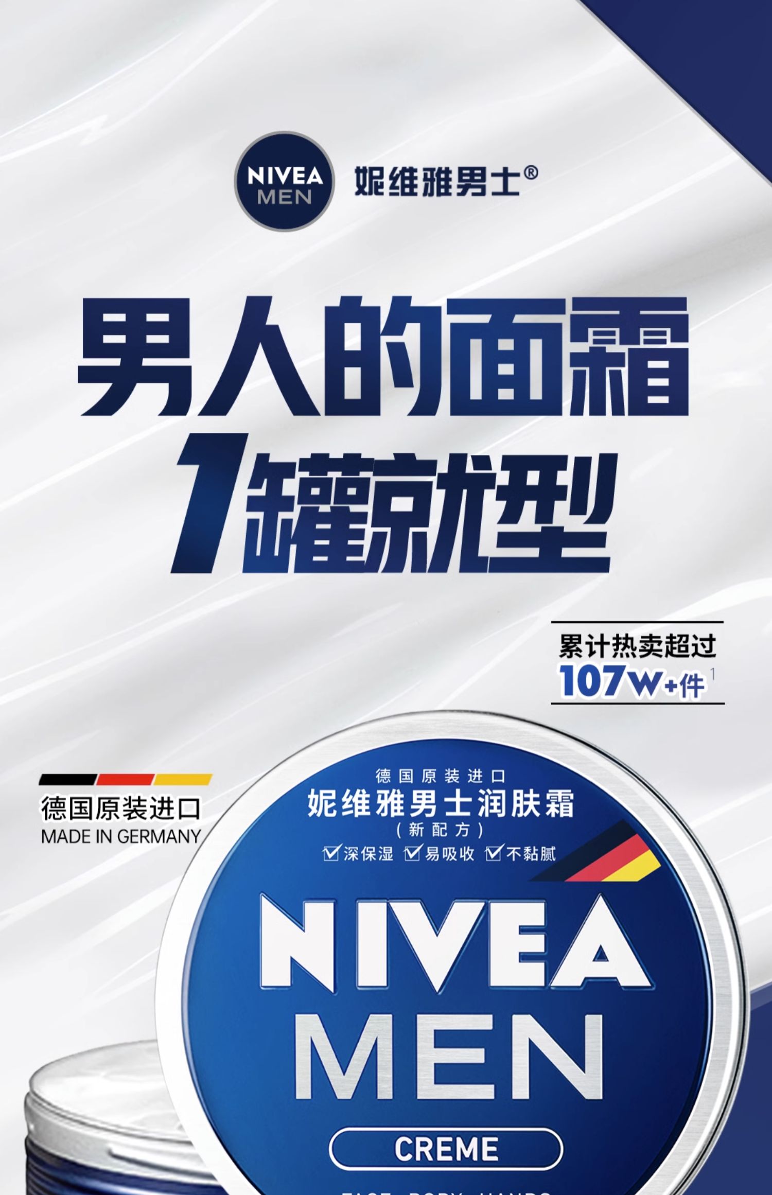 商品名称:妮维雅男士专用润肤霜补水保湿滋润不粘腻便携多用秋冬擦脸霜