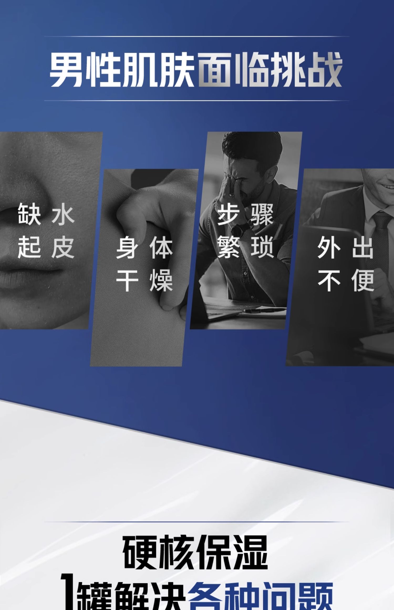 商品简介:【领22元优惠券,享跨店满减300-40,凑单到手约67元】男士专研,一罐多用,长效滋润,击退秋冬干燥,专利水包油配方,质地清爽,易吸收,不黏腻,时刻清爽【退货宝】