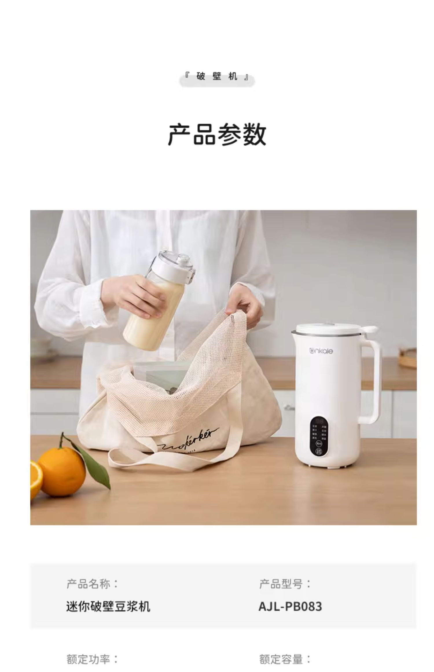 商品名称:ankale安壳豆浆机家用全自动免煮免滤1-2人3小型迷你多功能破壁机