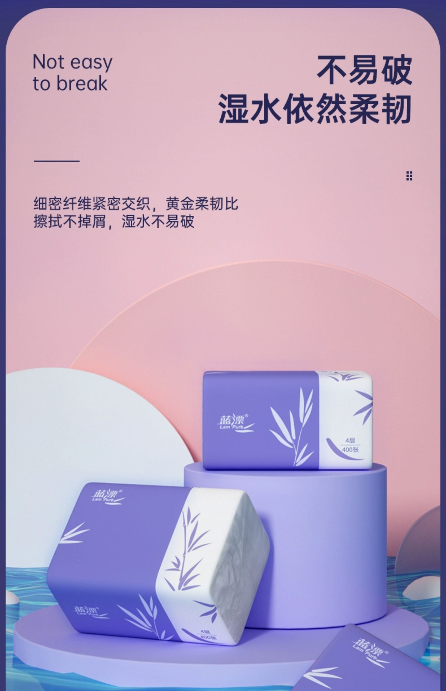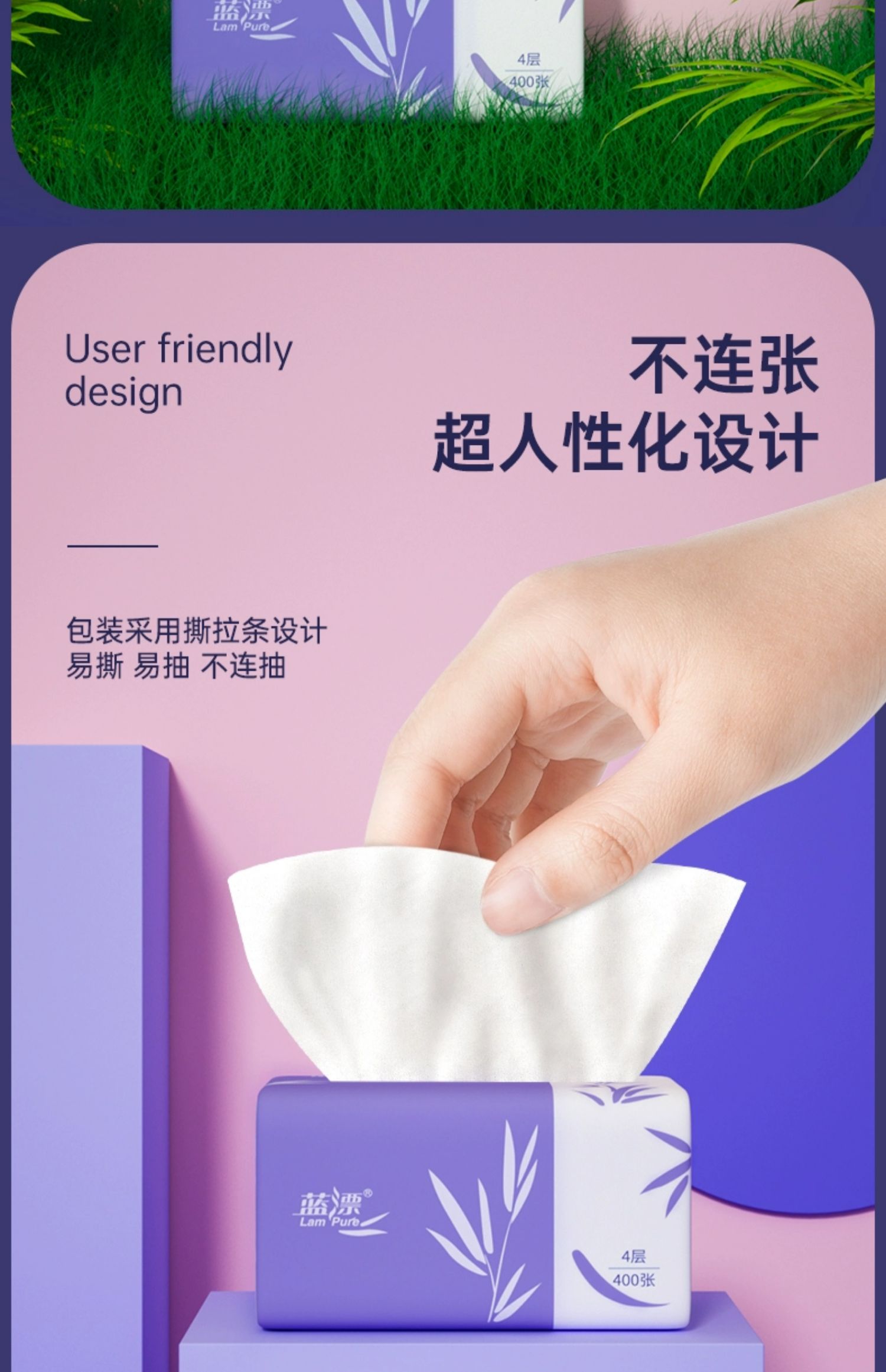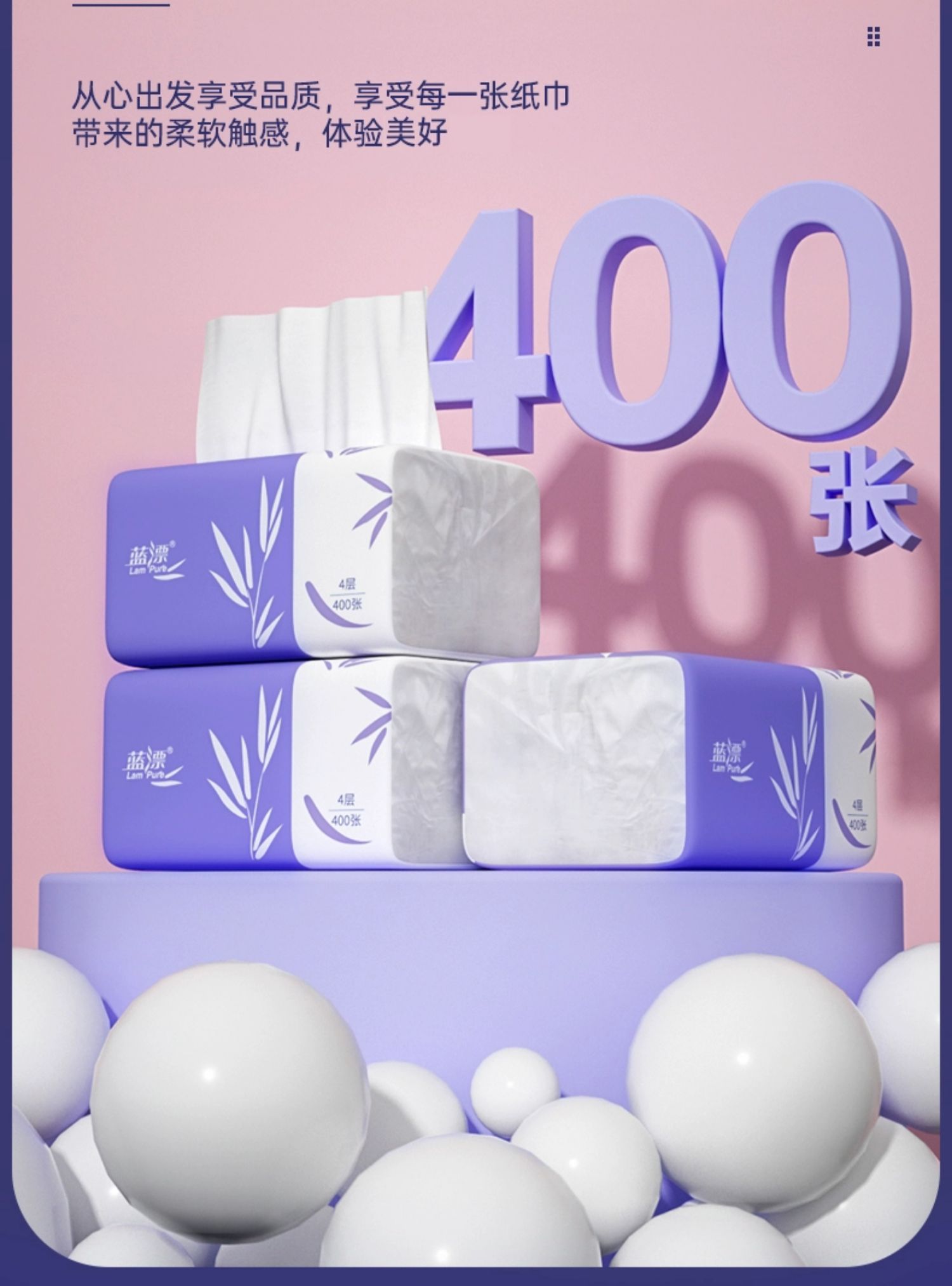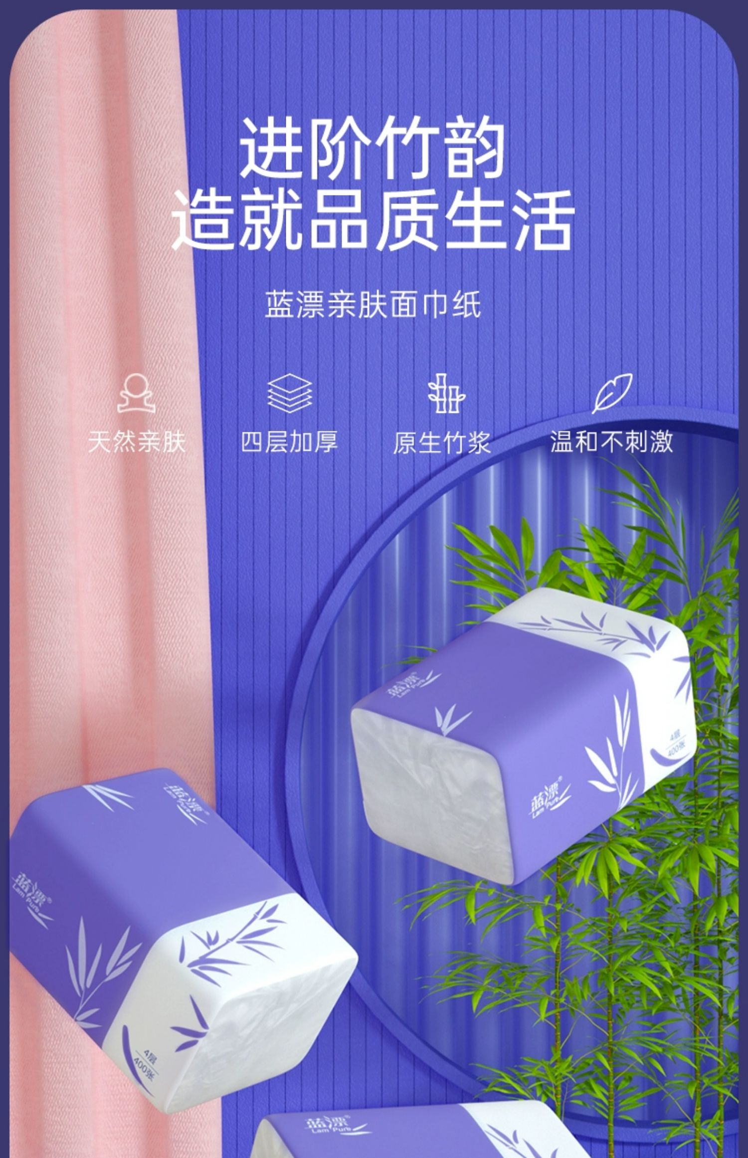 商品介绍:稳定签到~3大包1200张蓝漂抽纸