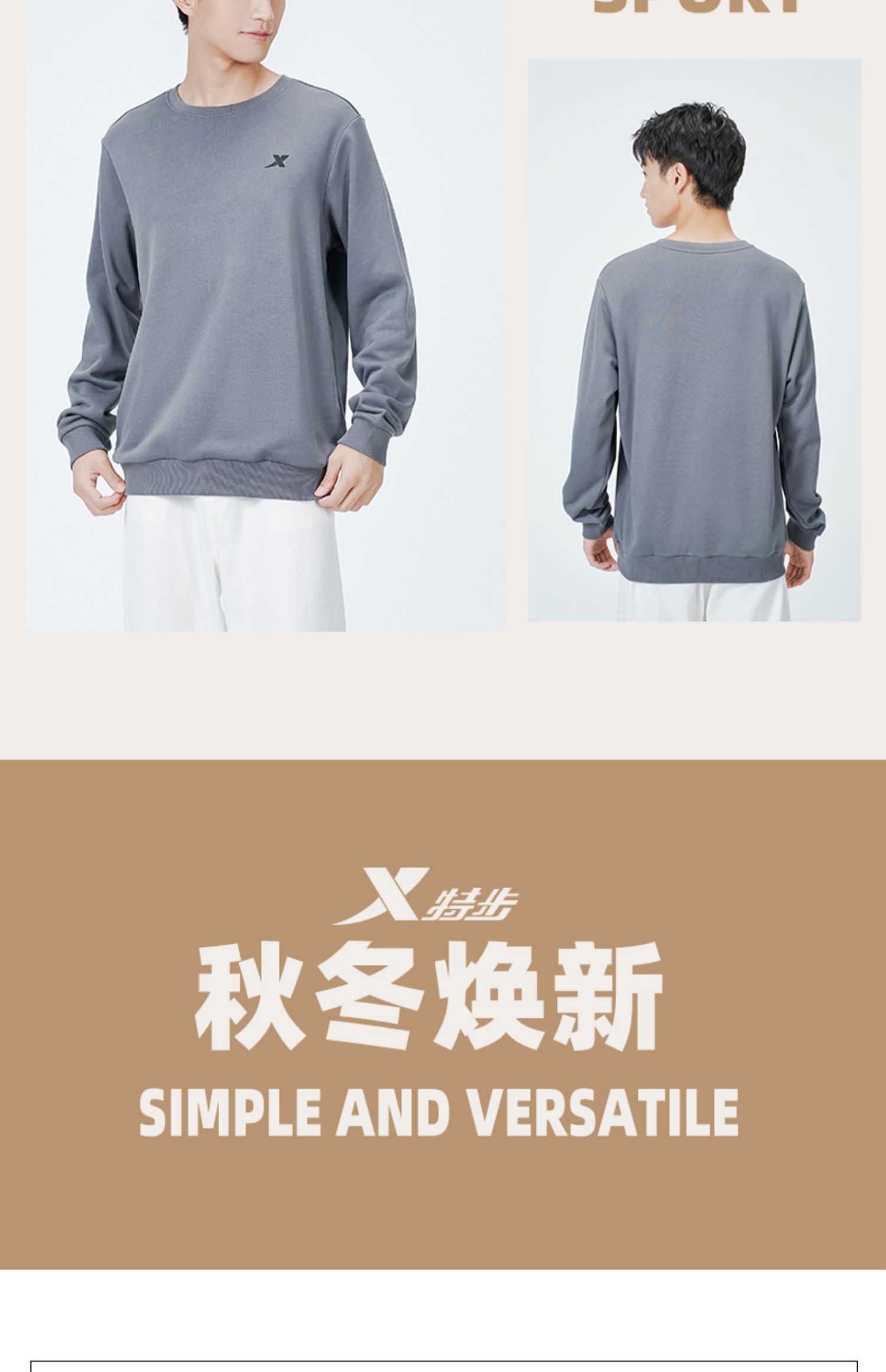 商品介绍:特步秋冬保暖圆领加绒卫衣