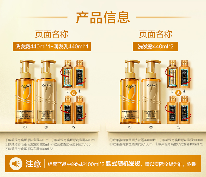 商品介绍:欧莱雅大金瓶洗发水护发素生姜洗护套装