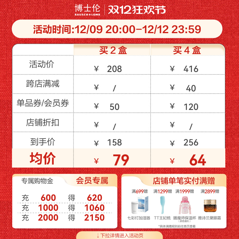 商品介绍:拍2博士伦官旗春日初见日抛10片*2