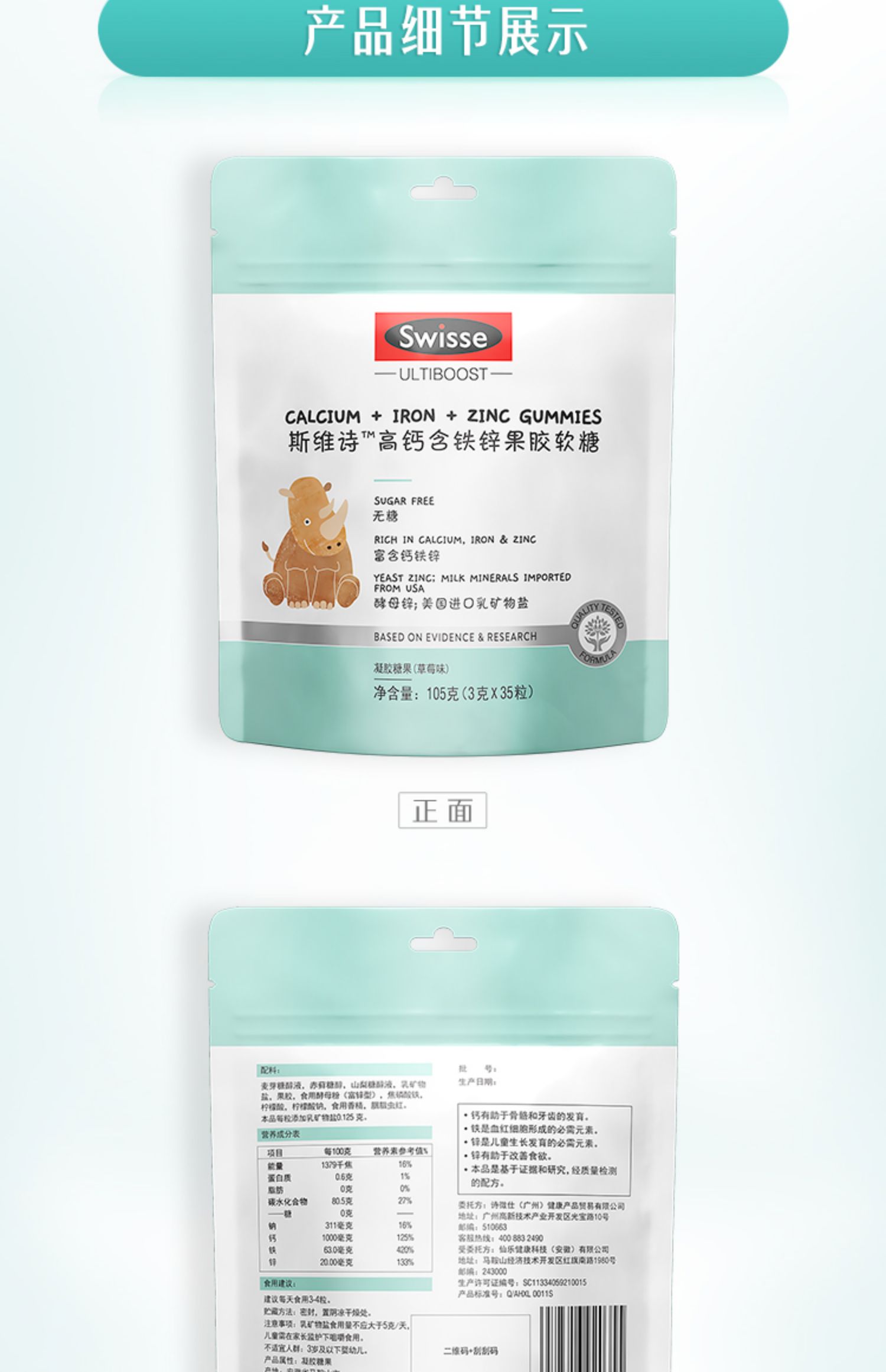 商品介绍:Swisse高钙含铁锌果胶软糖35粒
