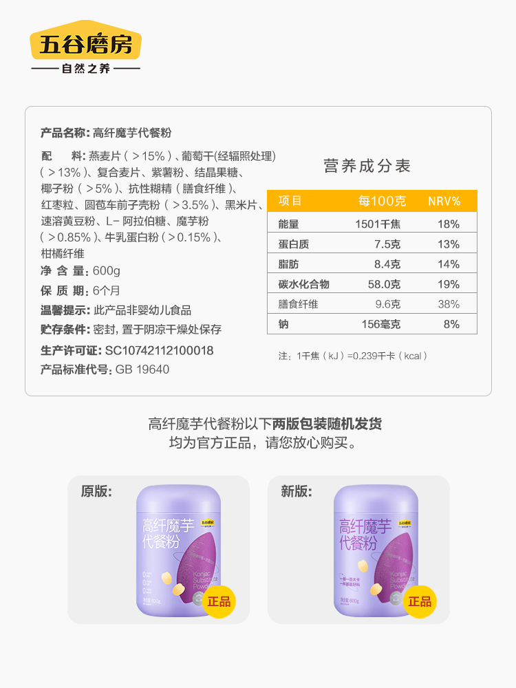 商品介绍:五谷磨房魔芋代餐粉546g紫薯杂粮代餐