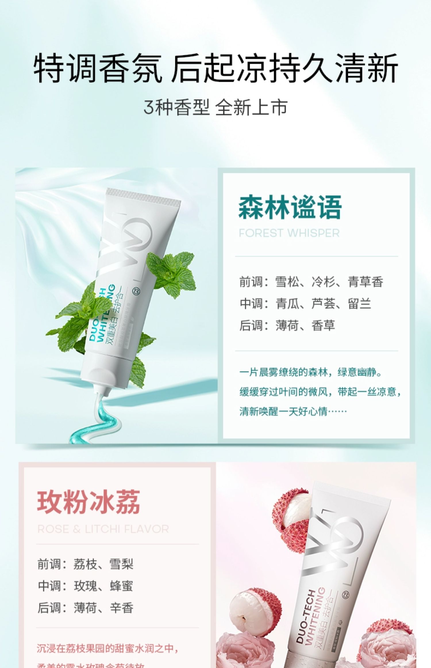 商品简介:【下单备注【WO牙膏】买即赠双管白(森林谧语香型)20g*1】一键助力,留香抛光,牙黄,口臭,牙渍,层层击克,SPA级洁齿享受,尝的到的甘甜清香,益齿护龈双重奏~