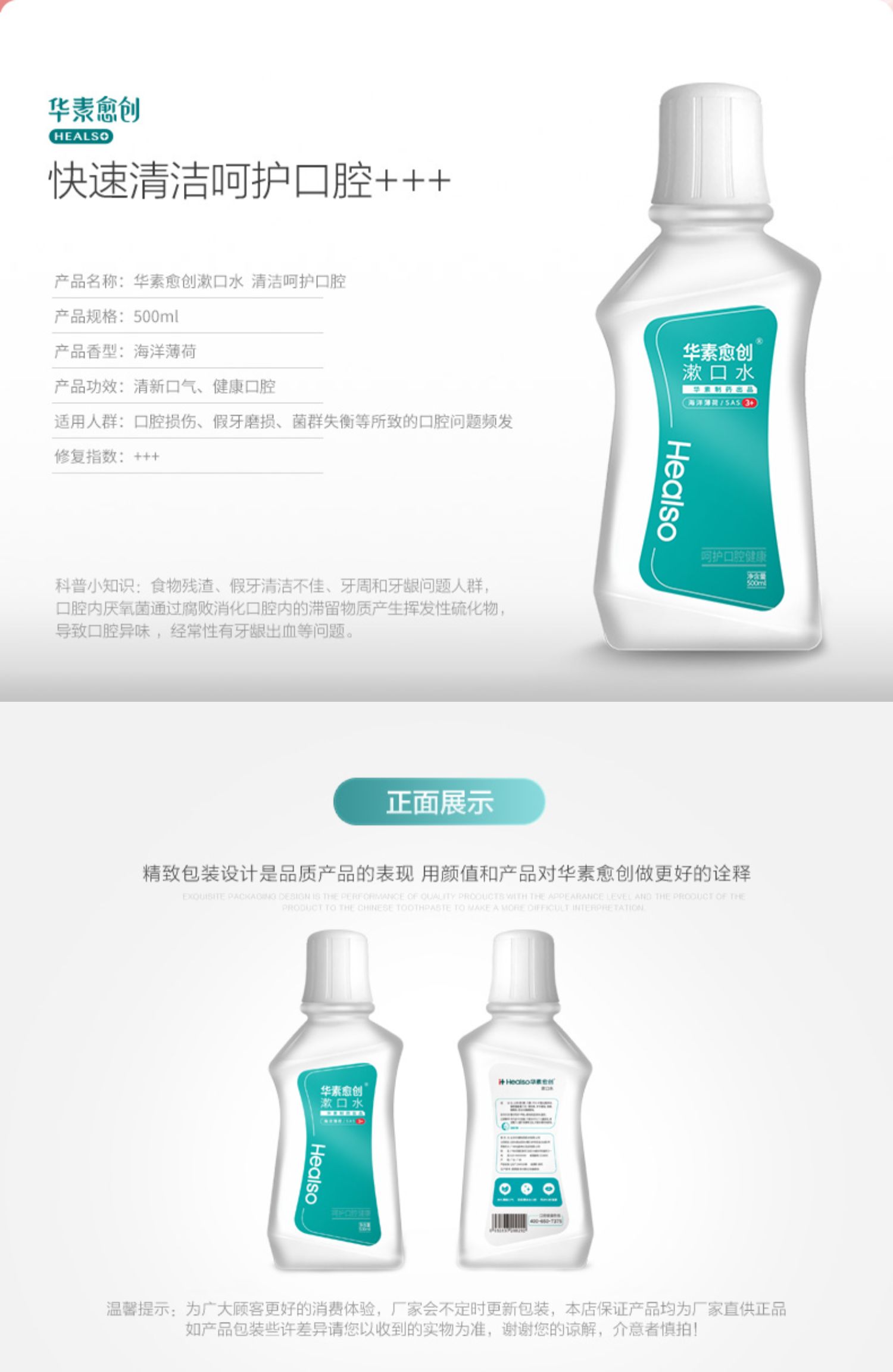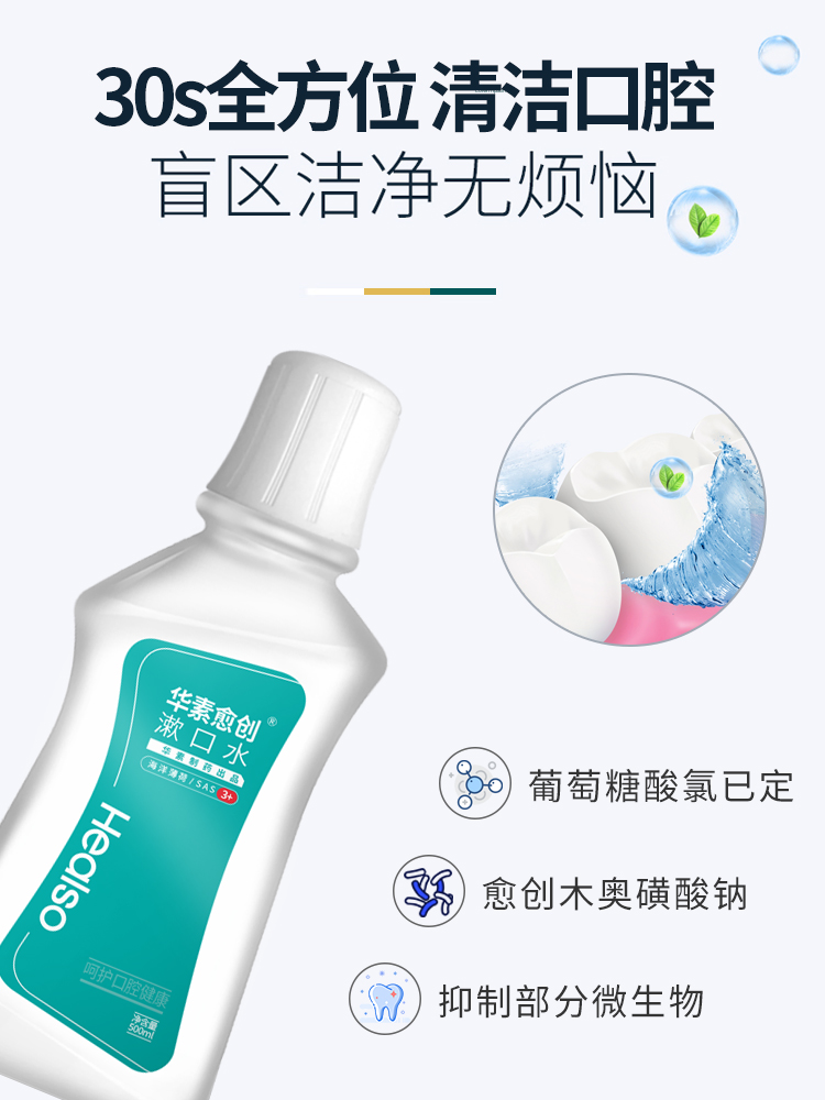 商品简介:华素愈创漱口水,呵护口腔健康,便携方便,30秒快速漱口,清洁口腔,预防牙龈问题,清新口气,深入口腔清洁,解除口臭尴尬!