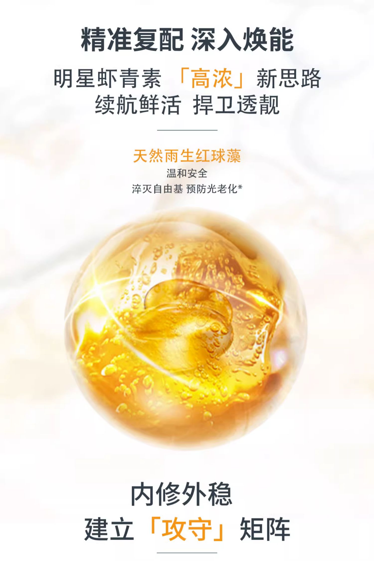 商品简介:【Easyface/艺霏】成分突破,虾青素含量提升,革新脂质体包埋技术,配合避光包装,肤感轻盈,清爽不油腻!改善肌肤老化减少面部黄感!