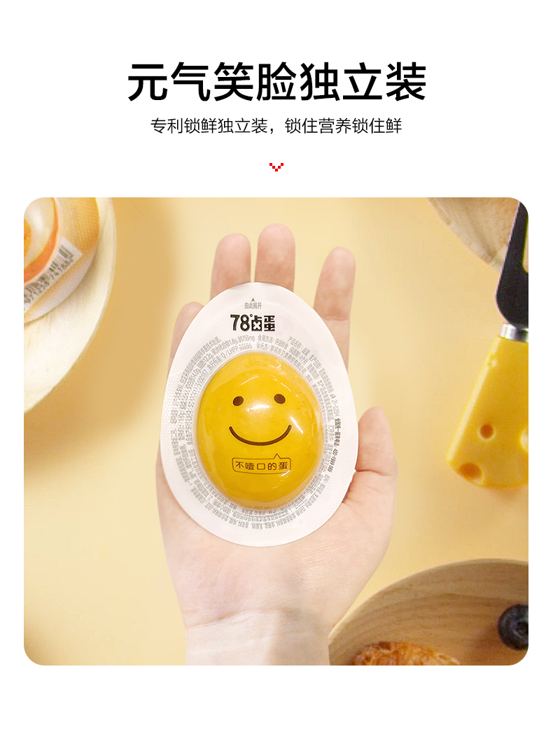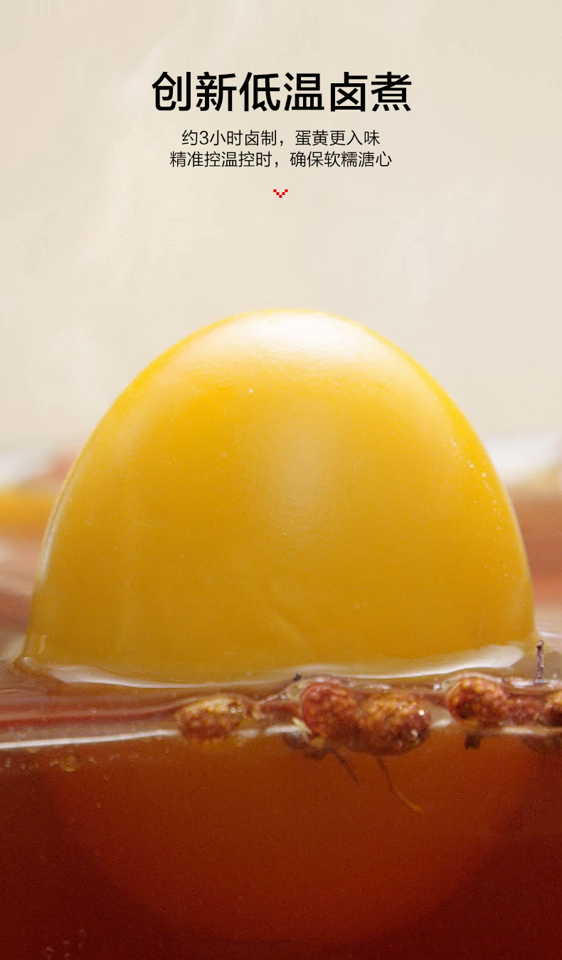 商品简介:【放丹宝!可凑129-35平台券】商场同款!猫超!低温慢卤,蛋黄软滑滑,好吃不停口,咸香入味,丝丝带点辣,可可爱爱,蛋形独立装,卫龙零食,吃起来放心~