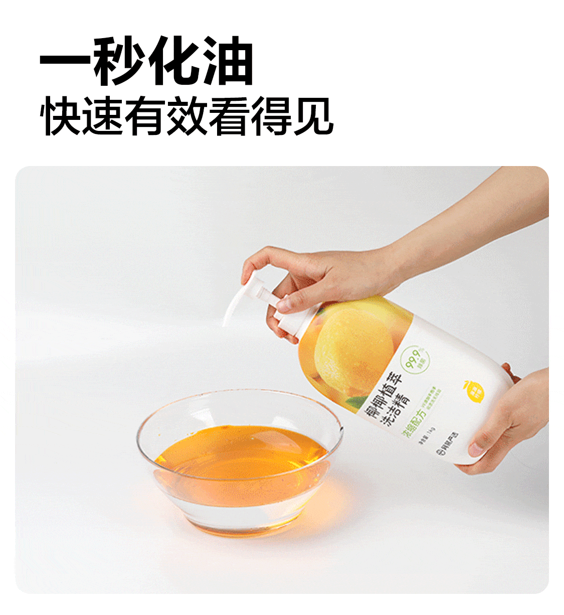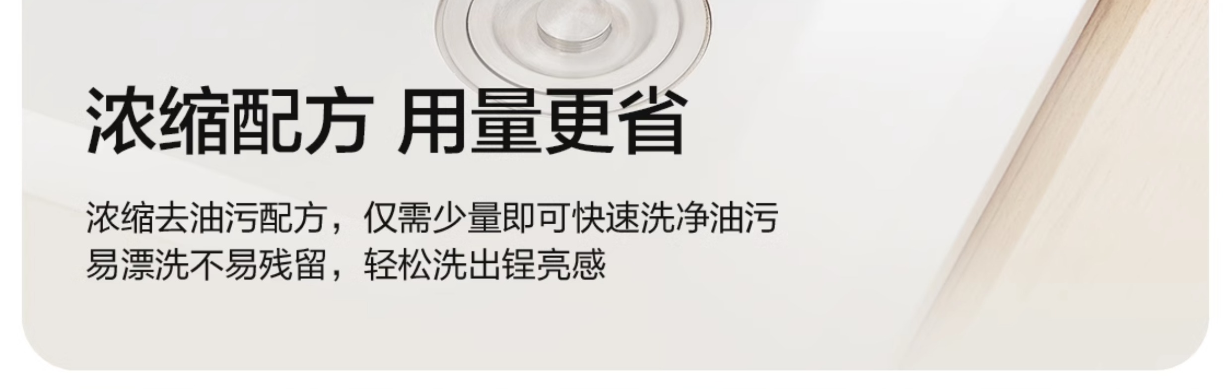 商品简介:选用椰子油萃取精华(APG烷基糖昔),安全快速瓦解油污,轻松解决中式厨房重油污问题,还原餐具光滑洁净。