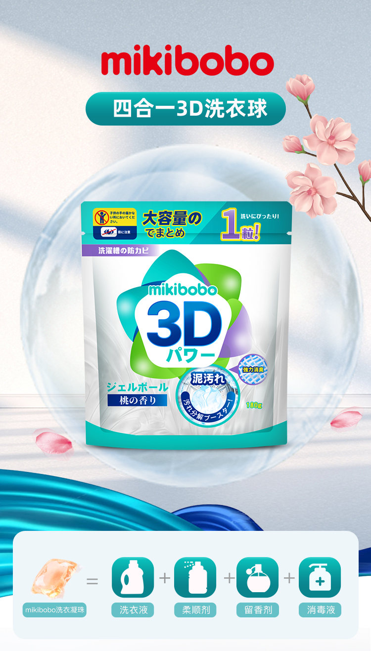 商品介绍:mikibobo持久留香洗衣凝珠180g
