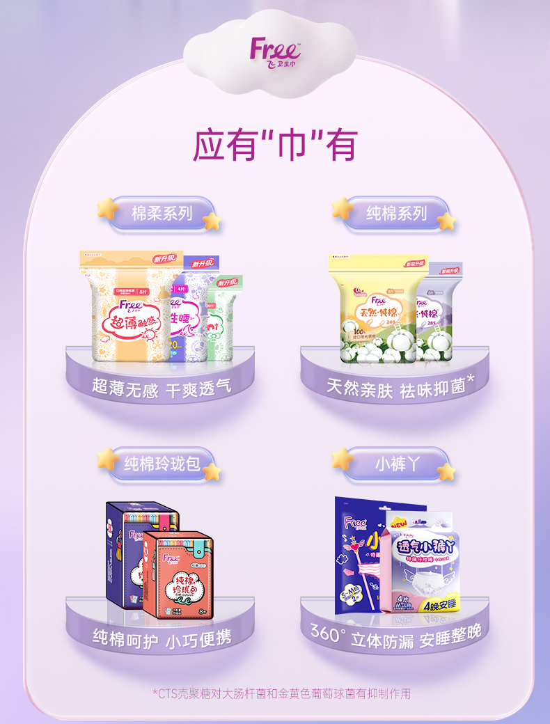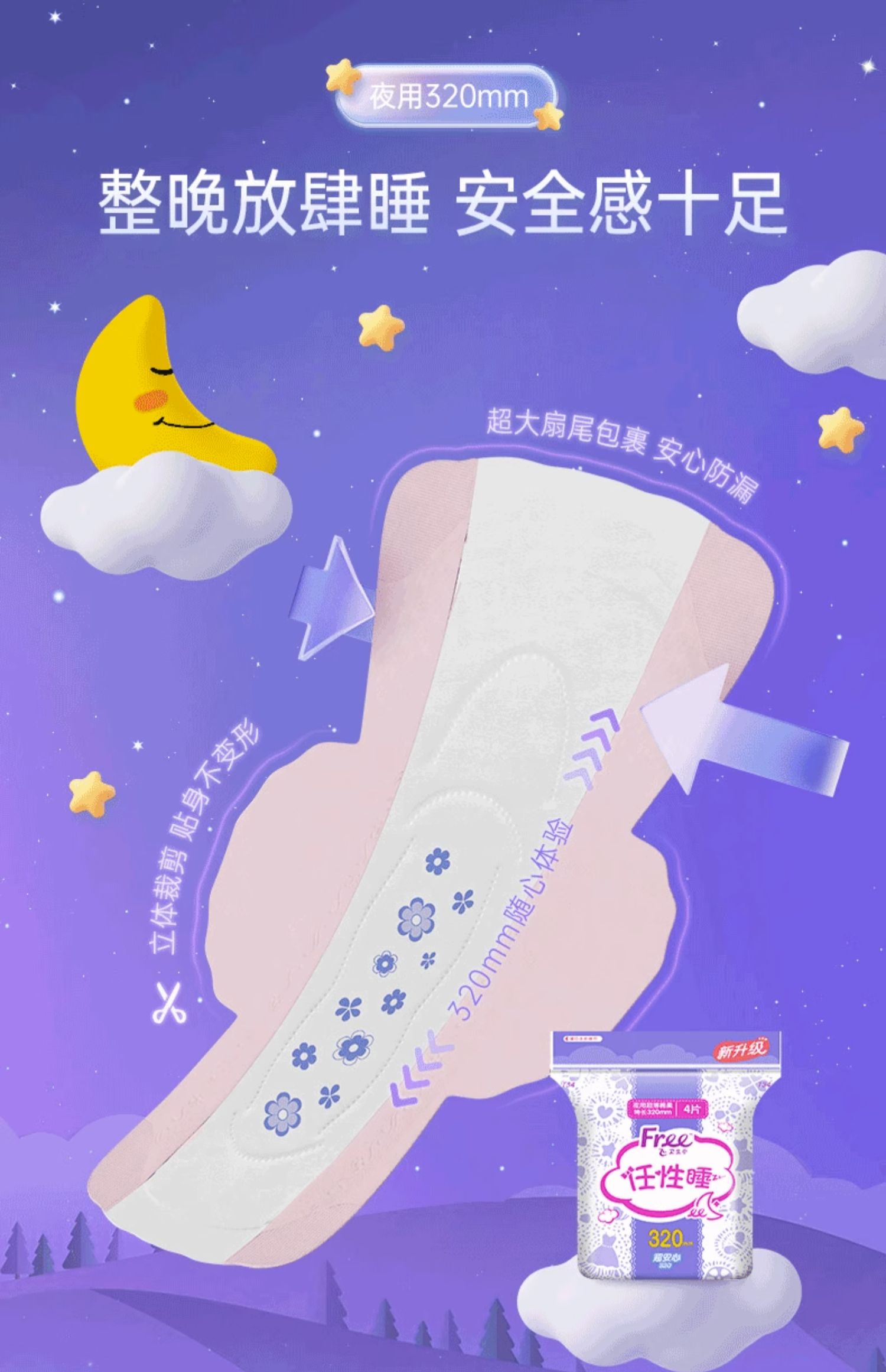 商品介绍:Free超薄透气卫生巾日夜用组合76片