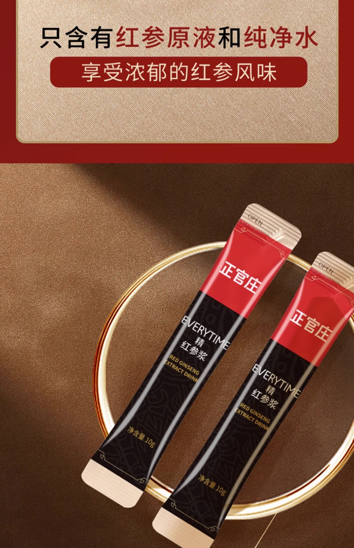 商品简介:韩国EVERYTIME累计畅销3千万+盒,严选优质红参材料,沿用正官庄120多年红参制作工艺,随时随地关爱自已,每天一条一撕即饮!