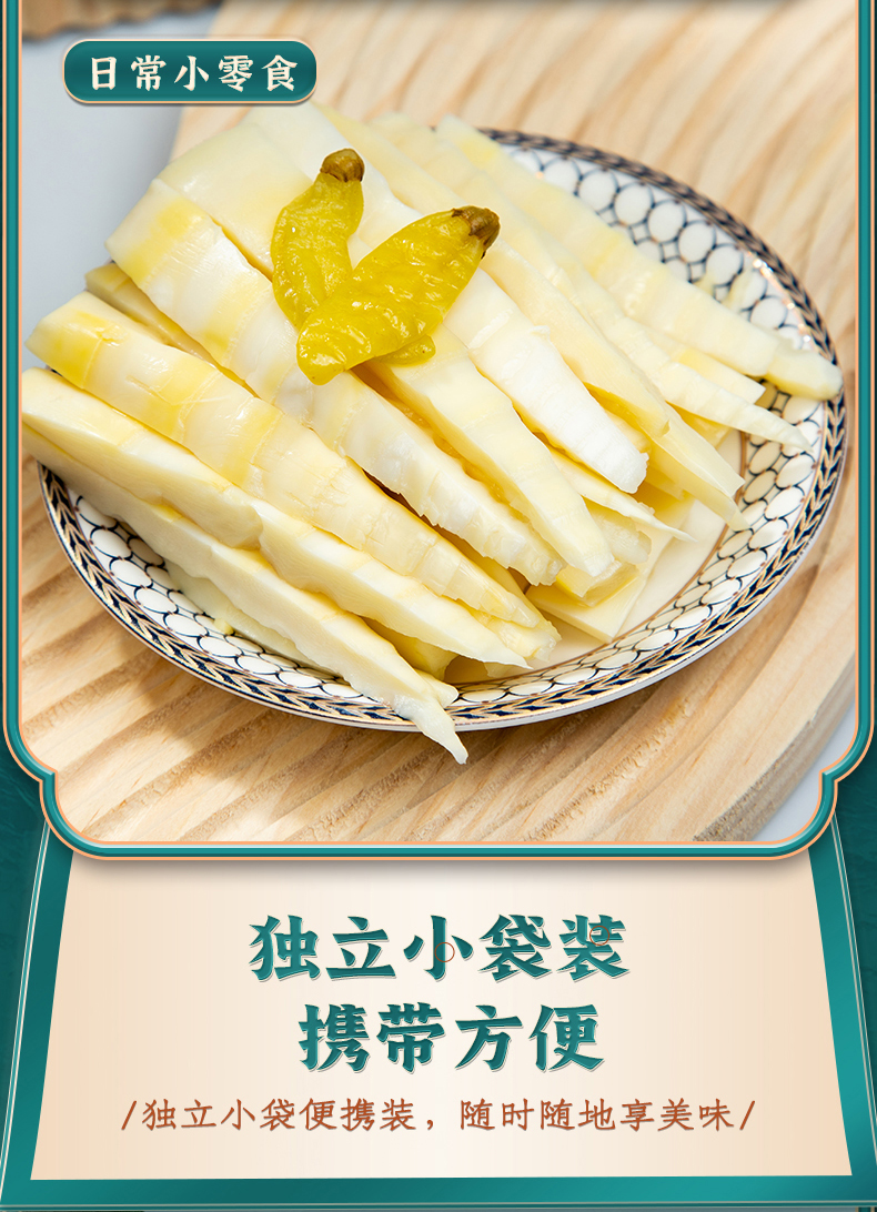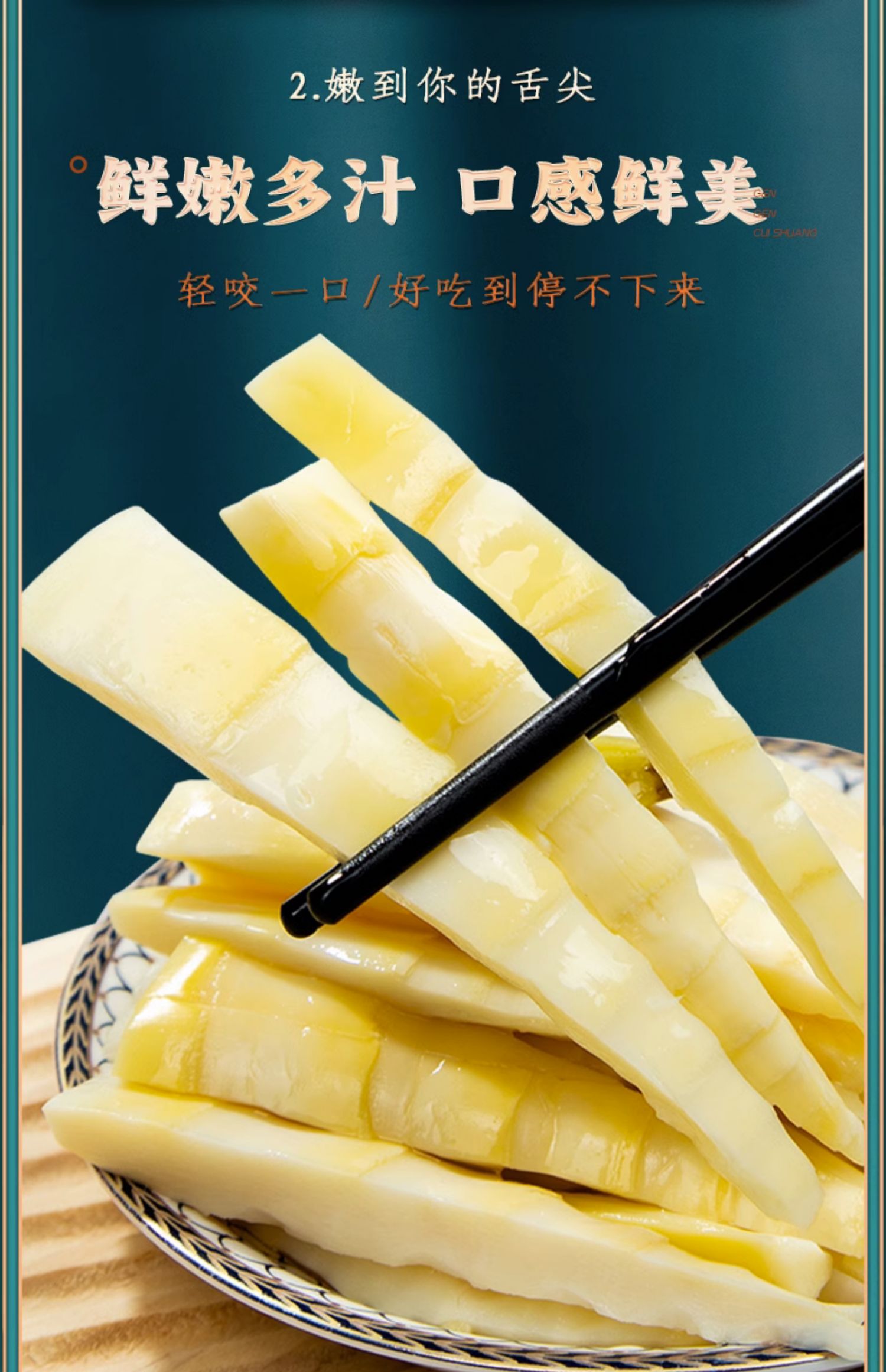 商品简介:可凑单!山椒笋尖来自山间竹林的美味,只取笋尖、开袋即食、脆嫩爽口,根根脆爽满口清香,鲜嫩多汁口感鲜美,酸辣入味好吃过瘾,独立小袋装携带方便,居家必备盘它~