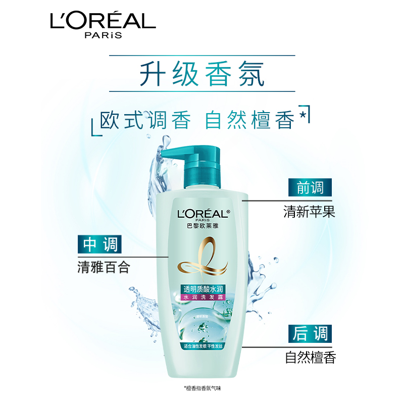 商品名称:欧莱雅透明质酸套装洗发水女控油去头屑柔顺无硅油洗发露持久清爽