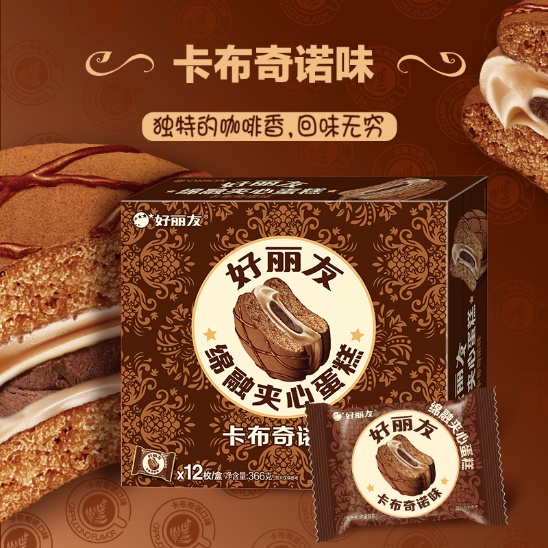 商品名称:好丽友官方旗舰店绵融夹心蛋糕派卡布奇诺味下午茶零食面包早餐