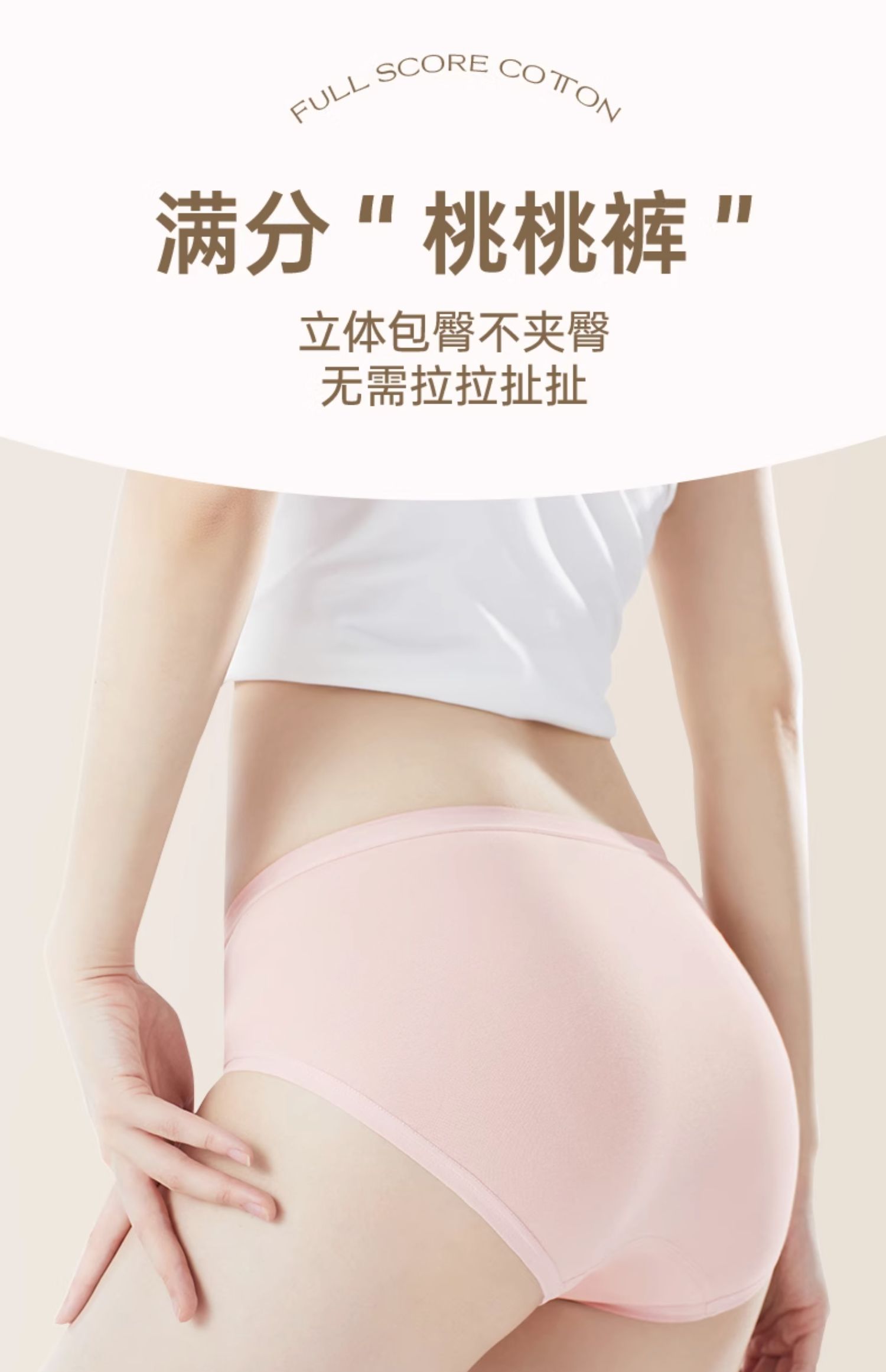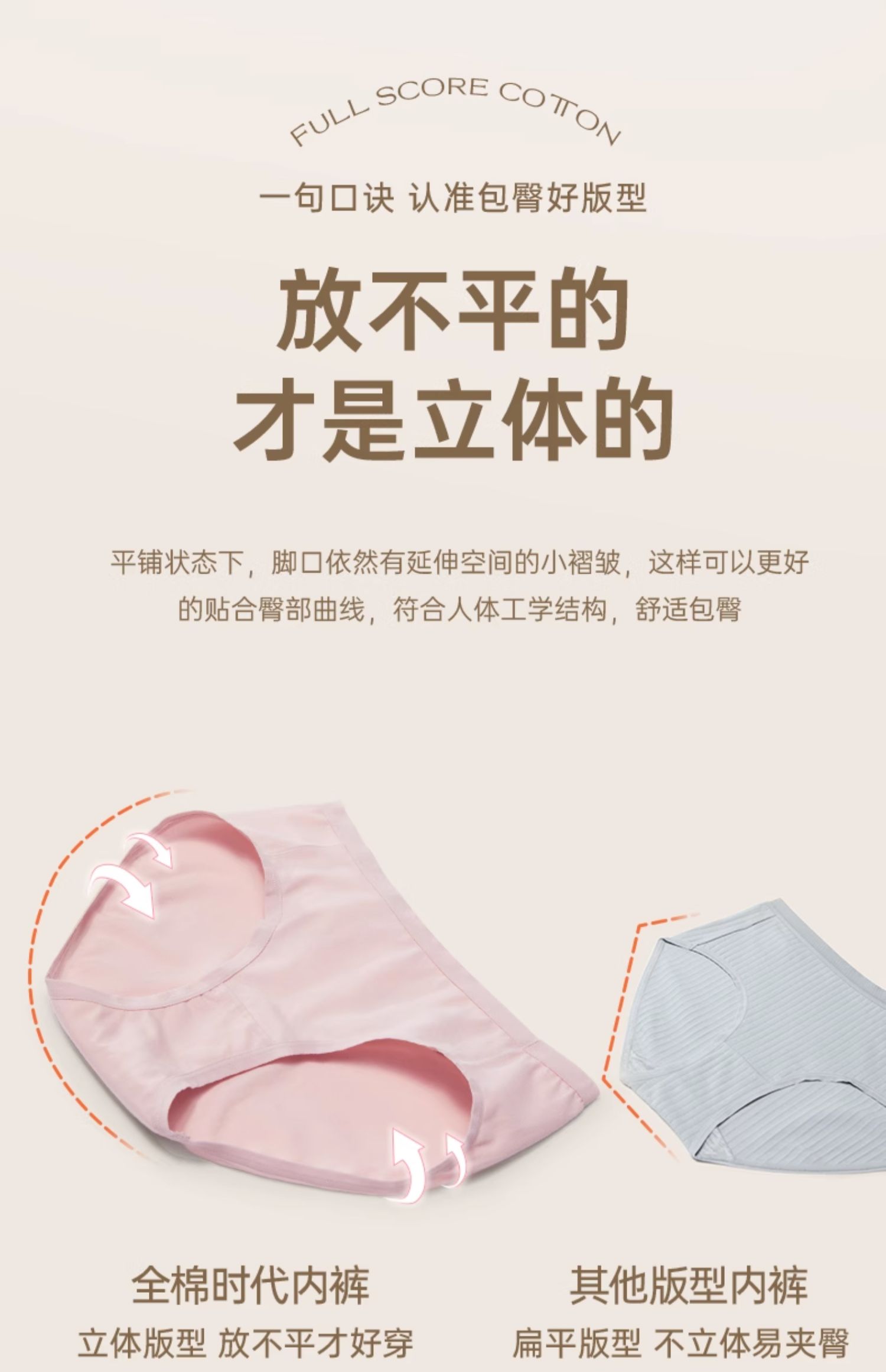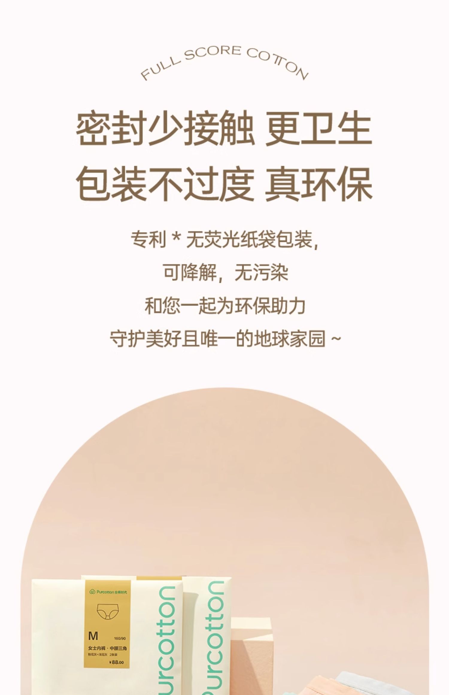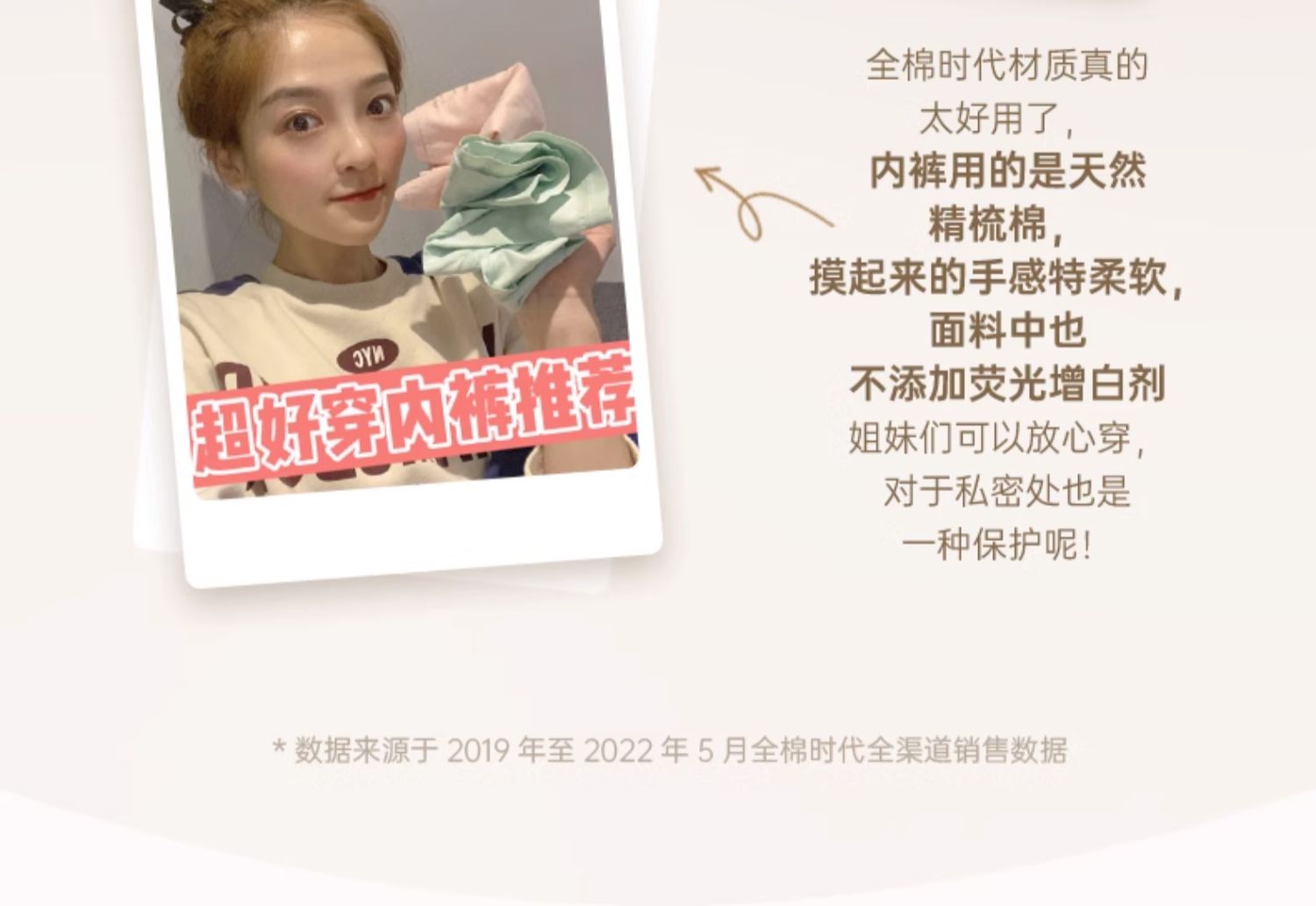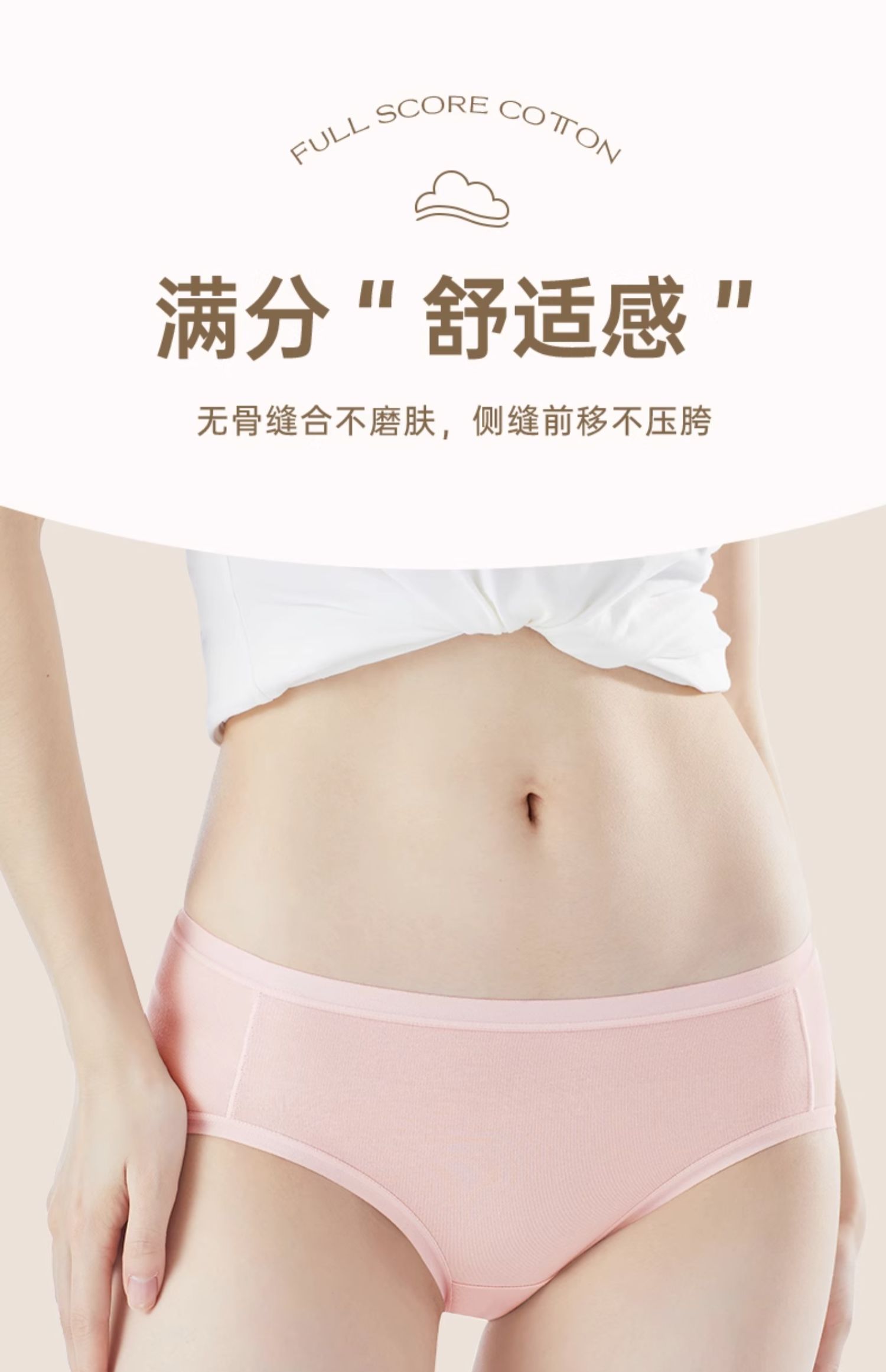 商品名称:全棉时代内裤女士纯棉中腰女生内裤三角裤短裤新款不夹臀舒适内裤