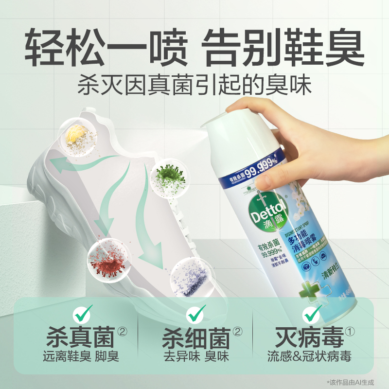 商品简介:滴露官方旗舰店!一喷杀菌除臭,30秒快速除菌,马桶、鞋袜都能用,清新去味,安全无毒!