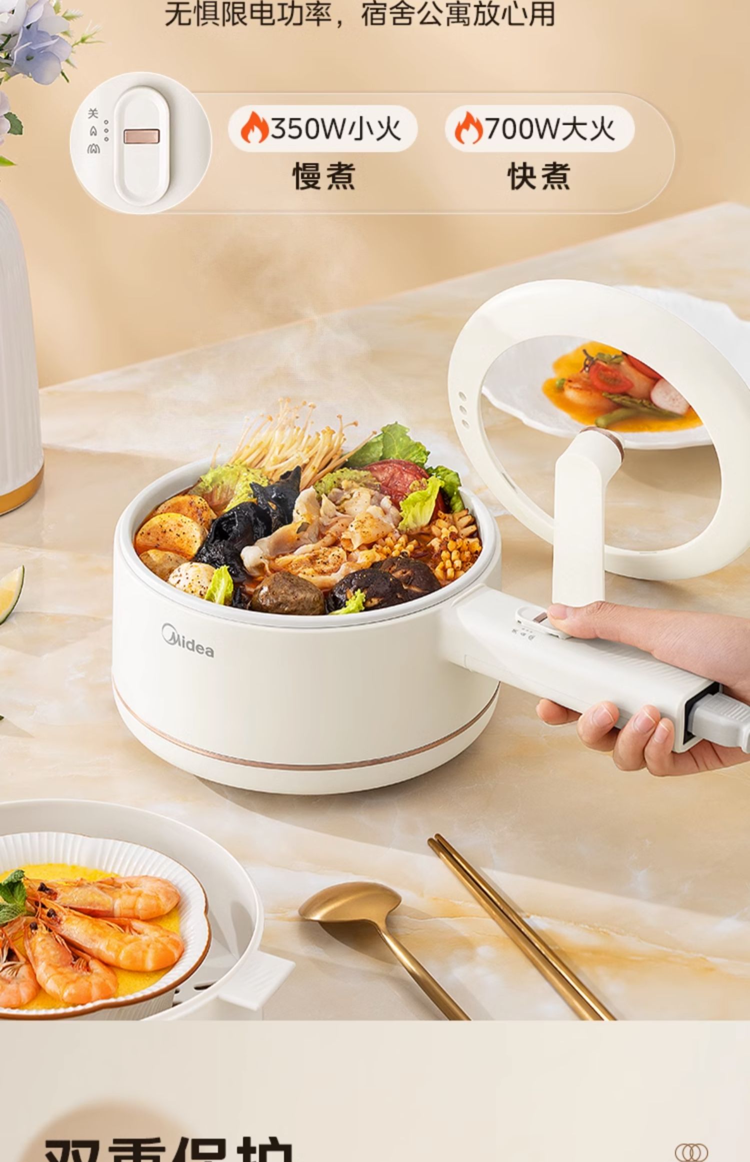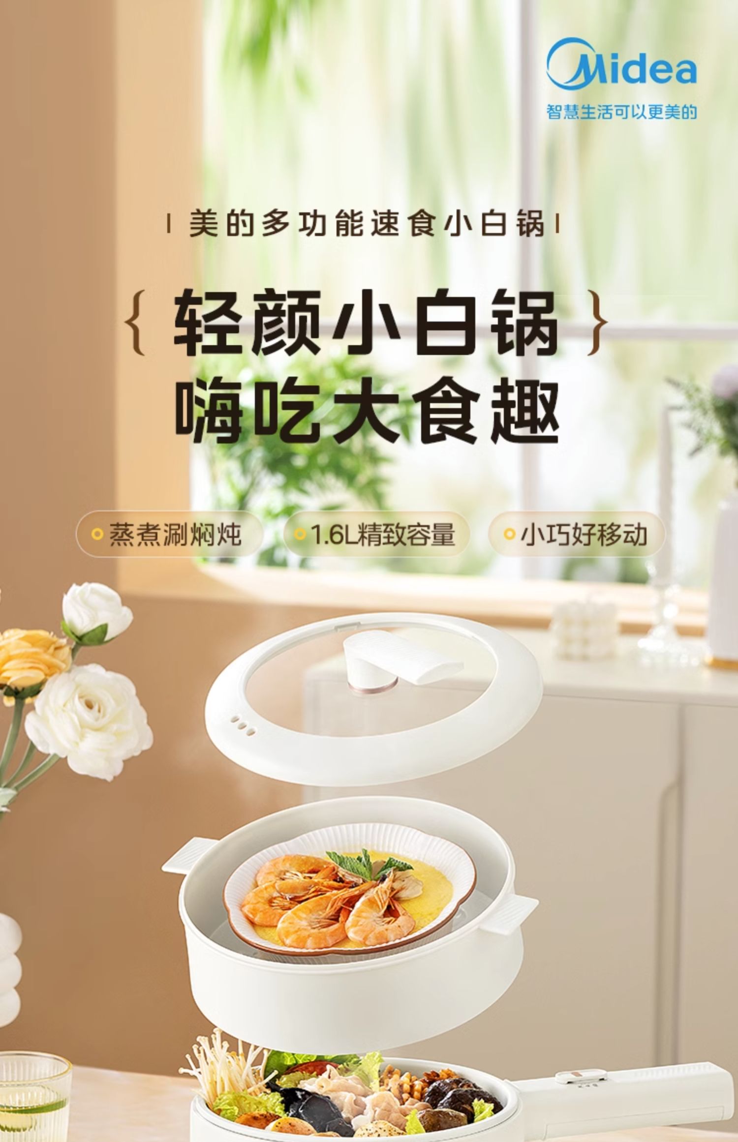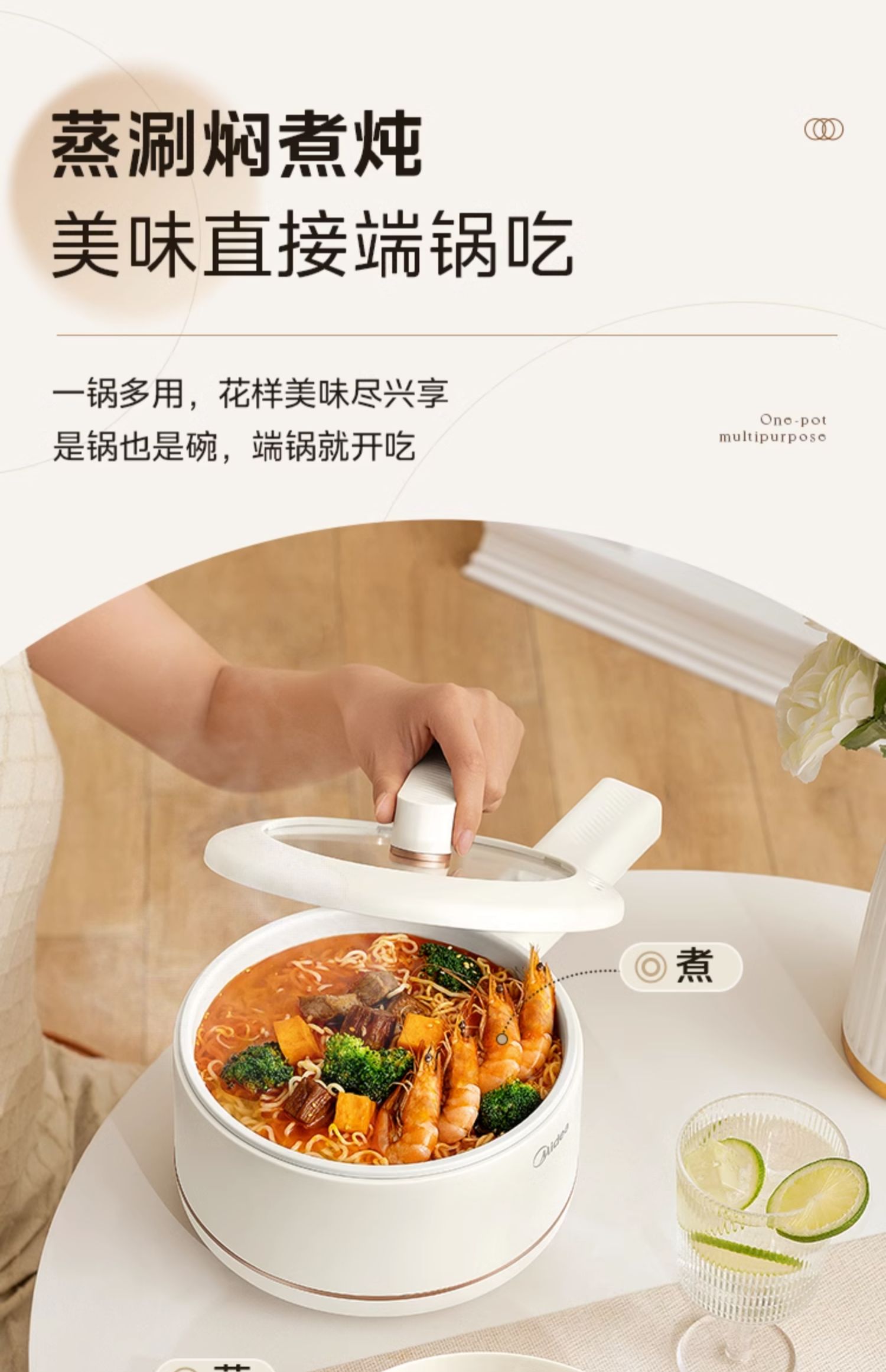 商品介绍:美的电煮锅小型迷你火锅学生宿舍泡面不粘锅