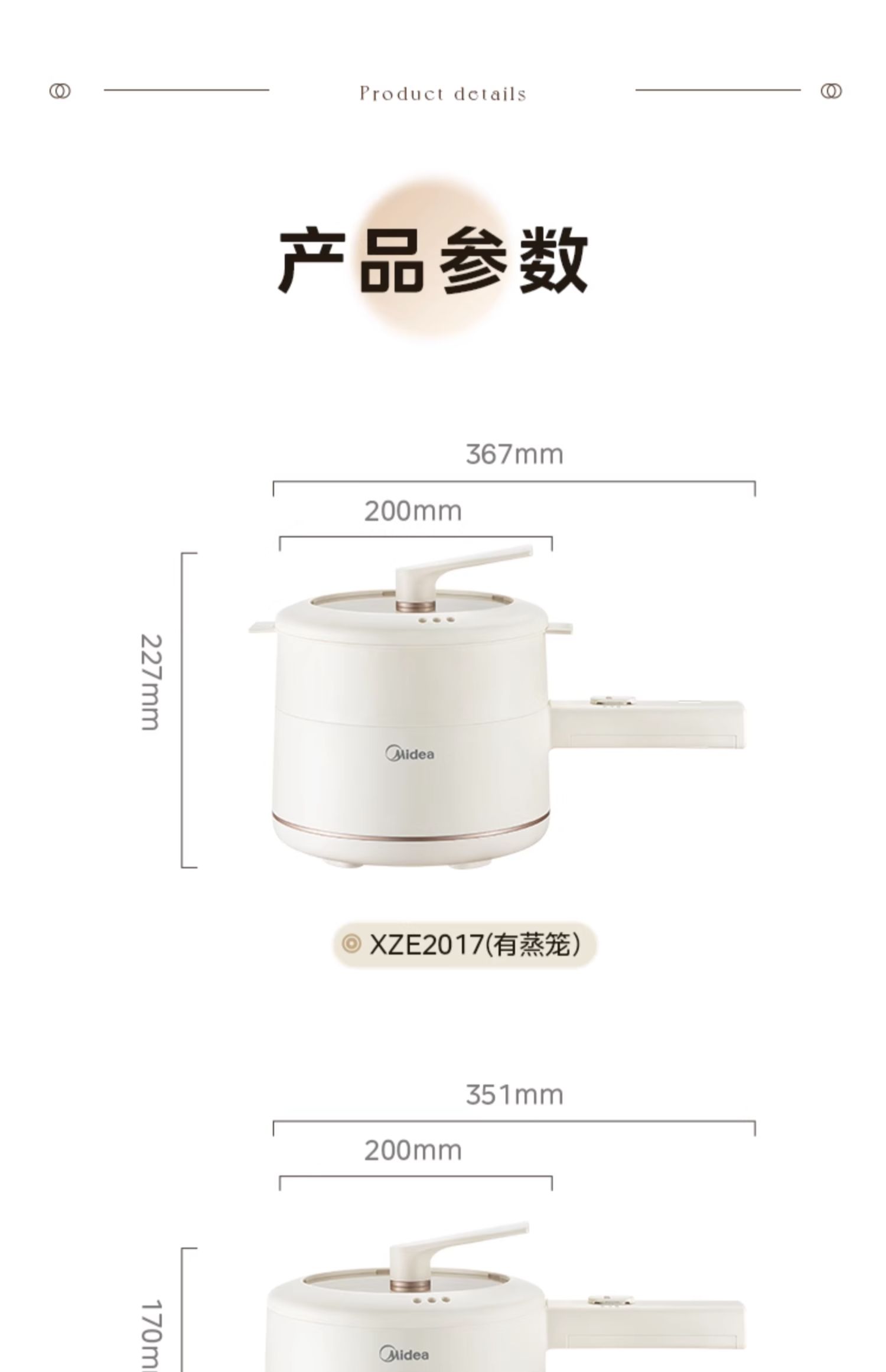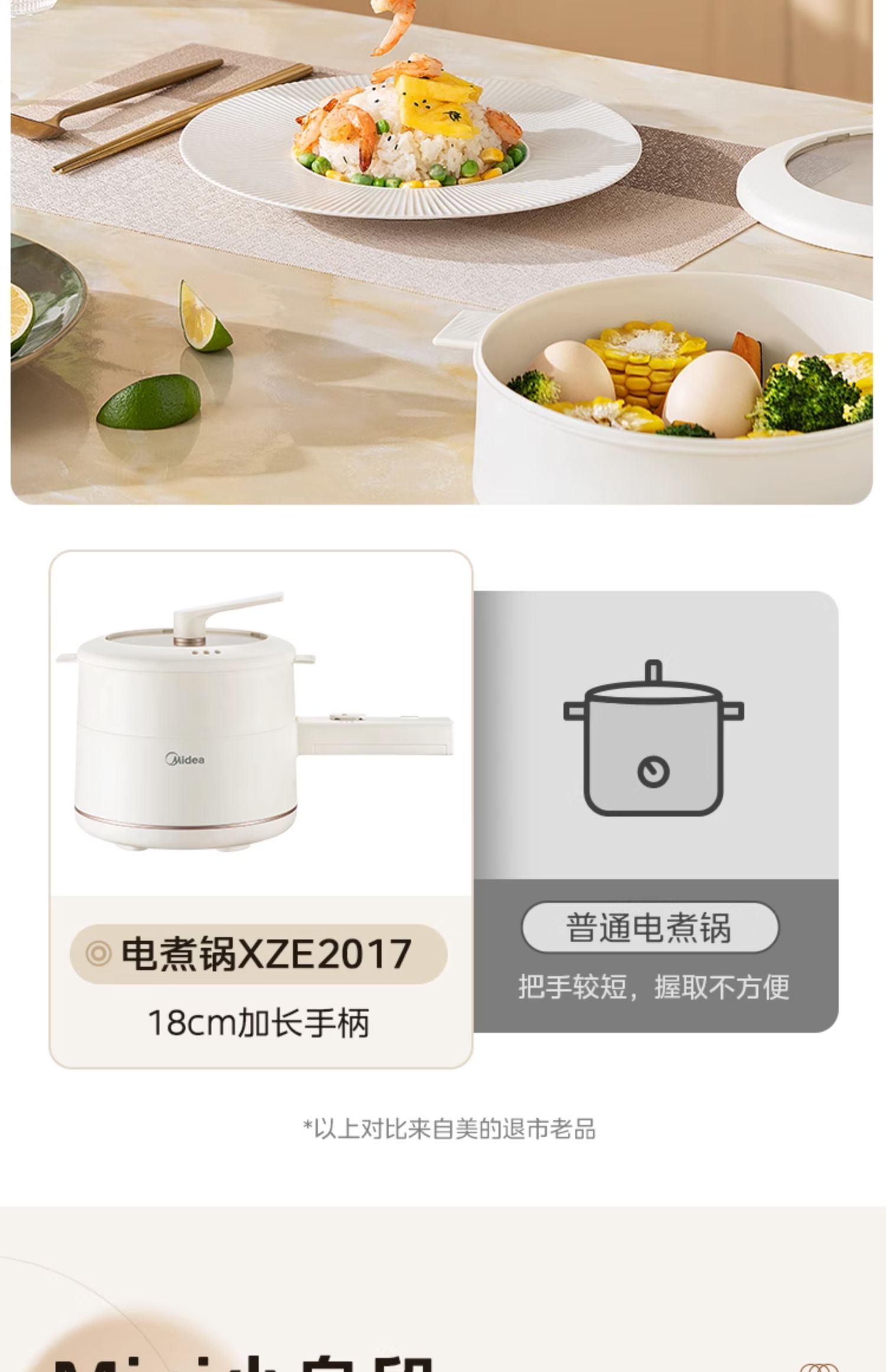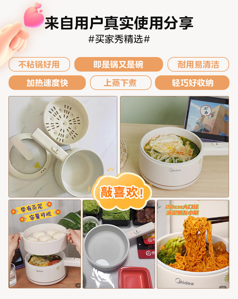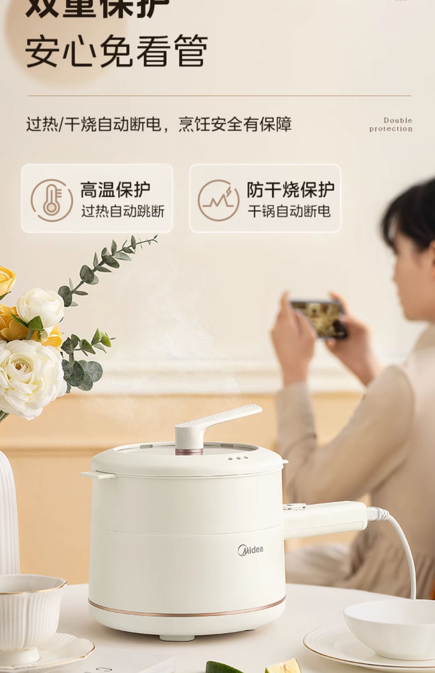 商品介绍:美的电煮锅小型迷你火锅学生宿舍泡面不粘锅
