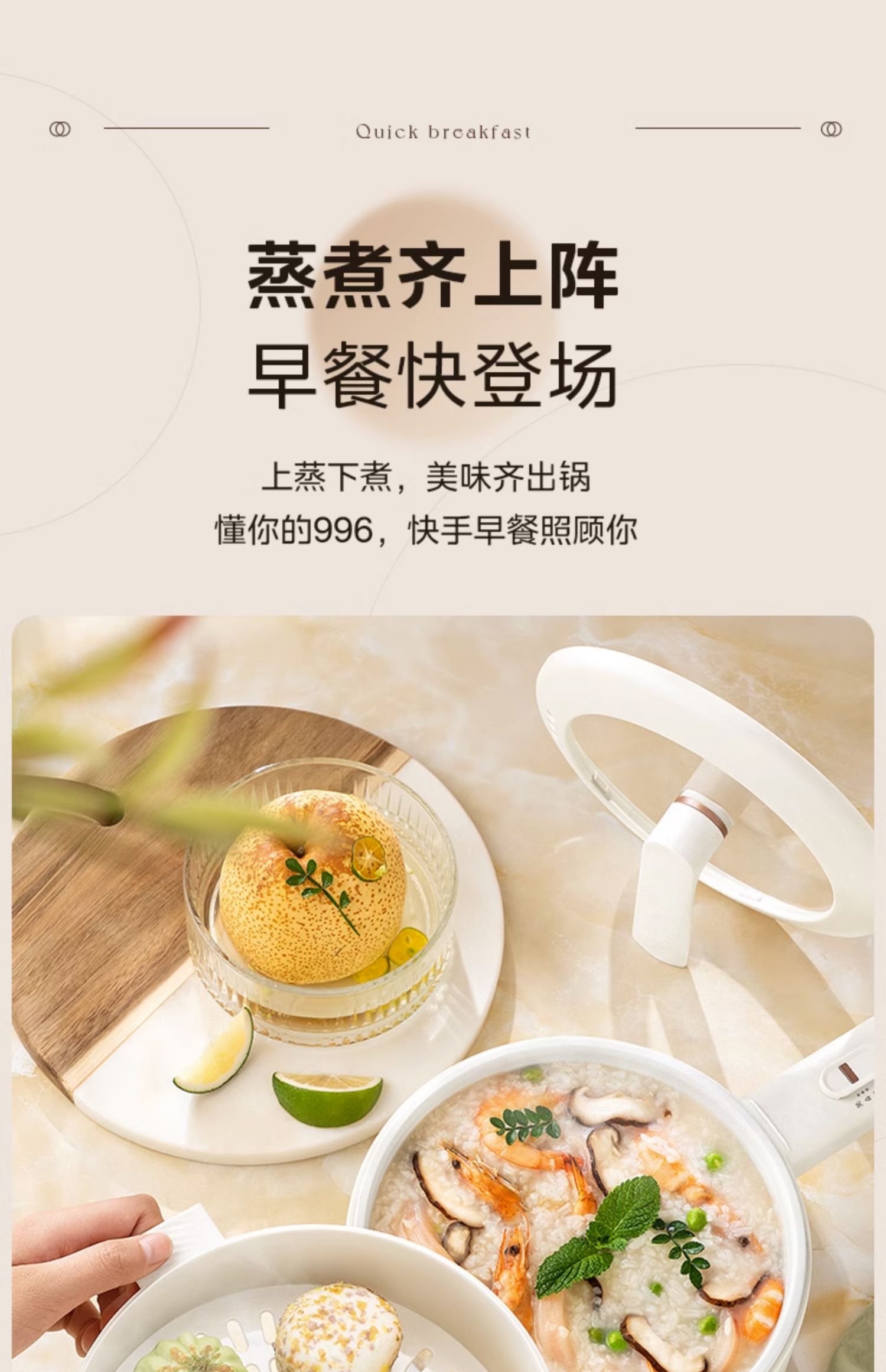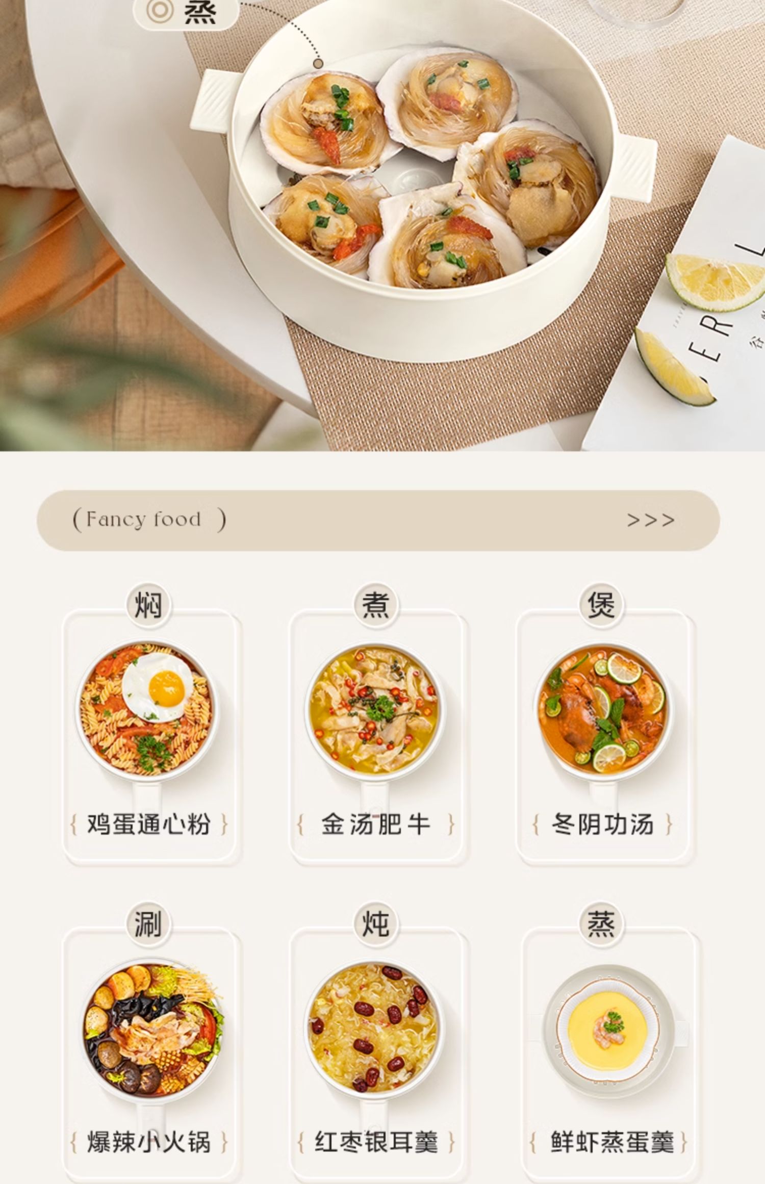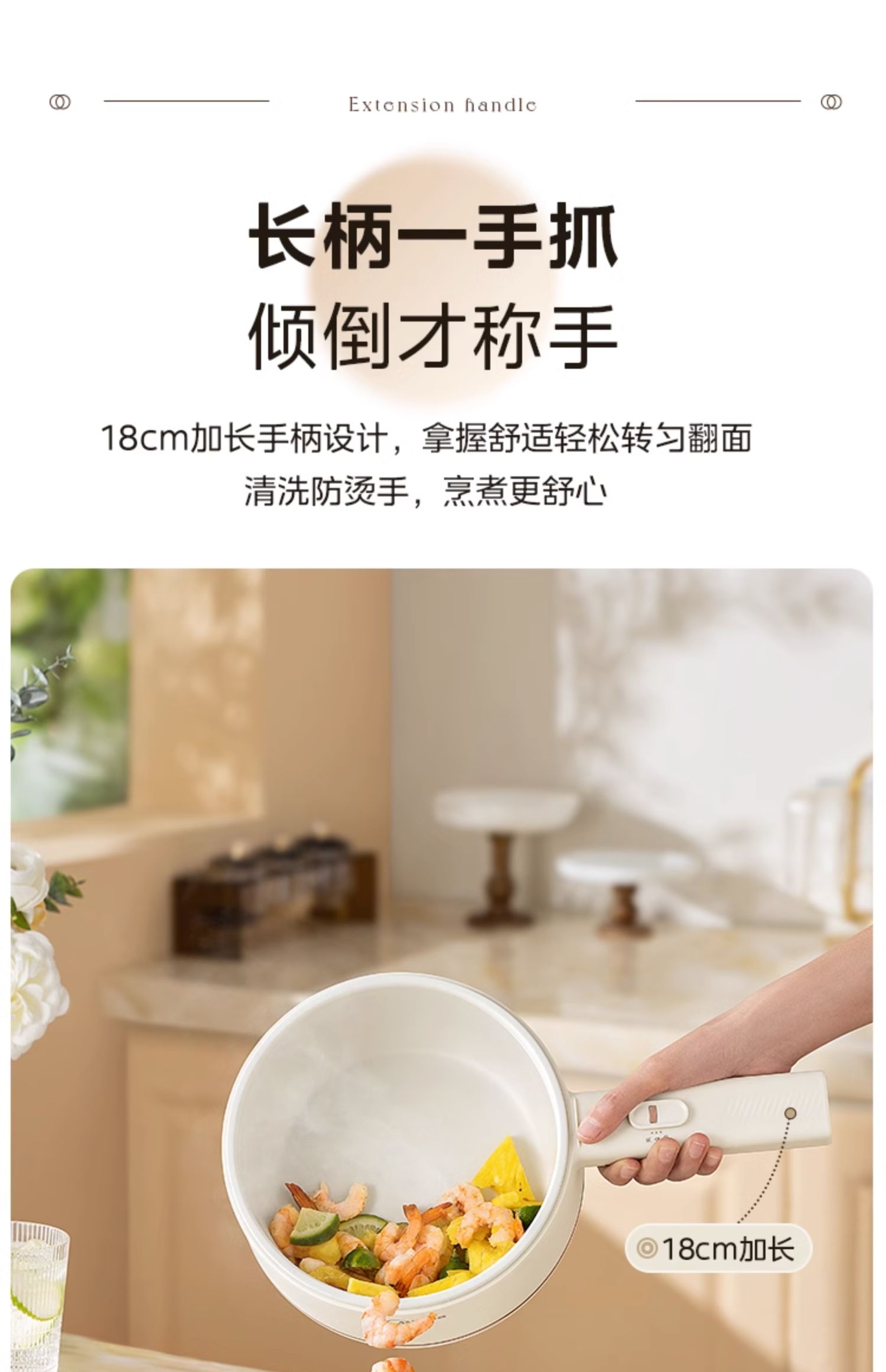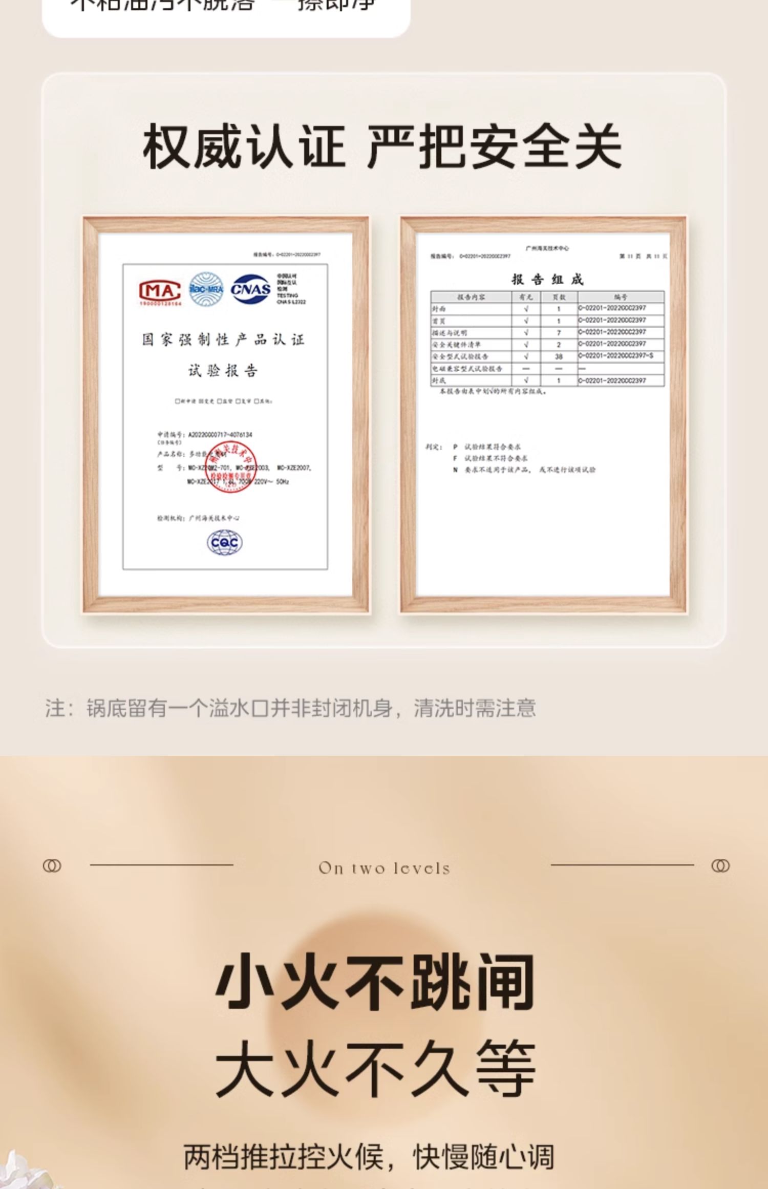 商品简介:食品级不粘涂层,美味不粘不糊用完冲一冲,干净如新锅,两档推拉控火候,快慢随心调无惧限电功率,宿舍公寓放心用,权威认证严把安全关!