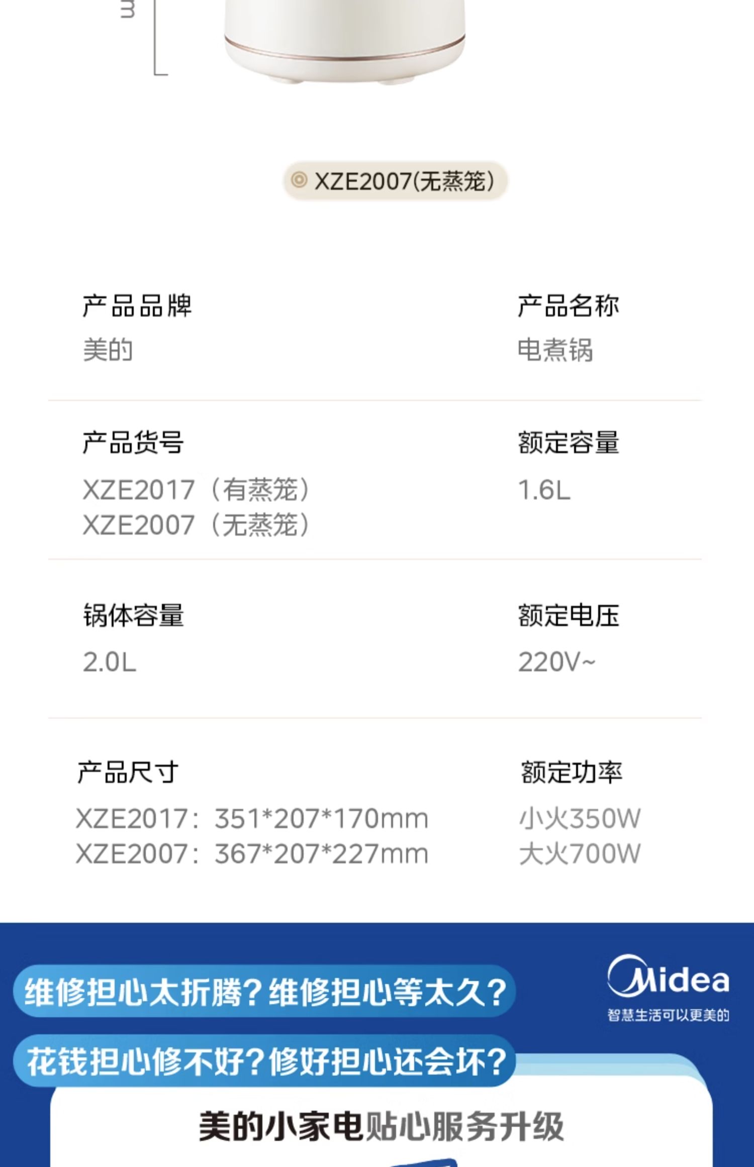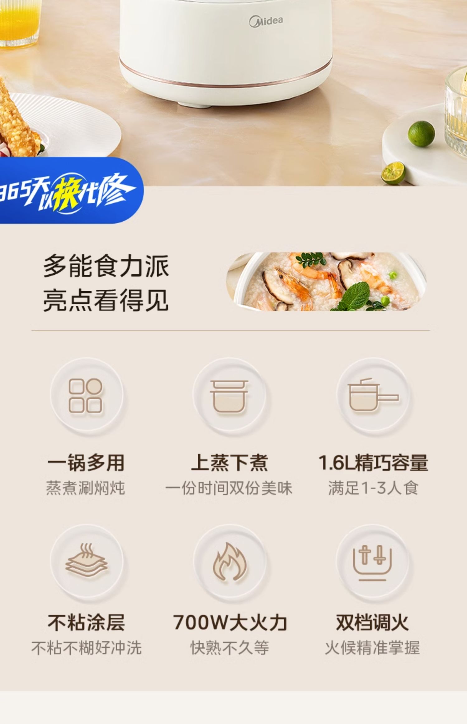 商品名称:美的电煮锅小型迷你火锅学生宿舍泡面不粘锅家用多功能蒸煮小电锅